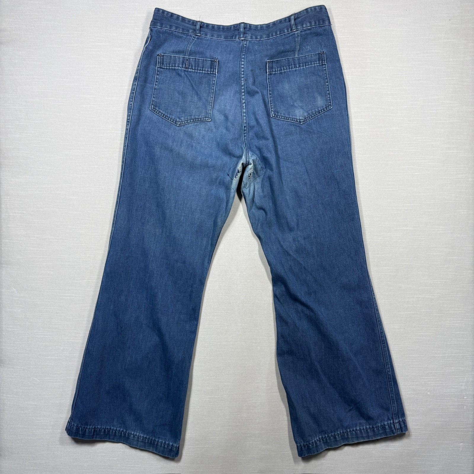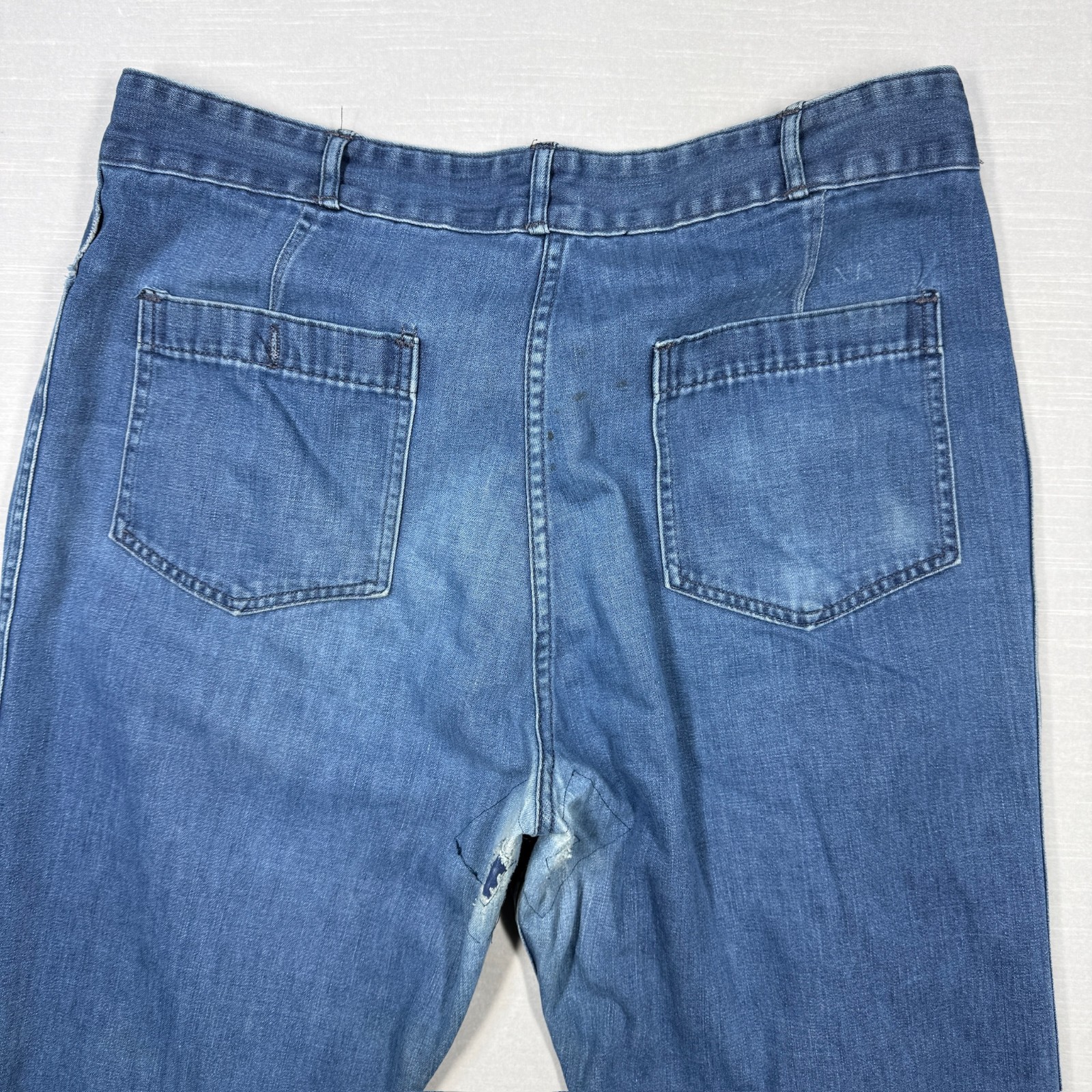 Vtg Seafarer Denim Jeans 39X32 Bell Bottoms Utility Nautical Navy USN Distressed