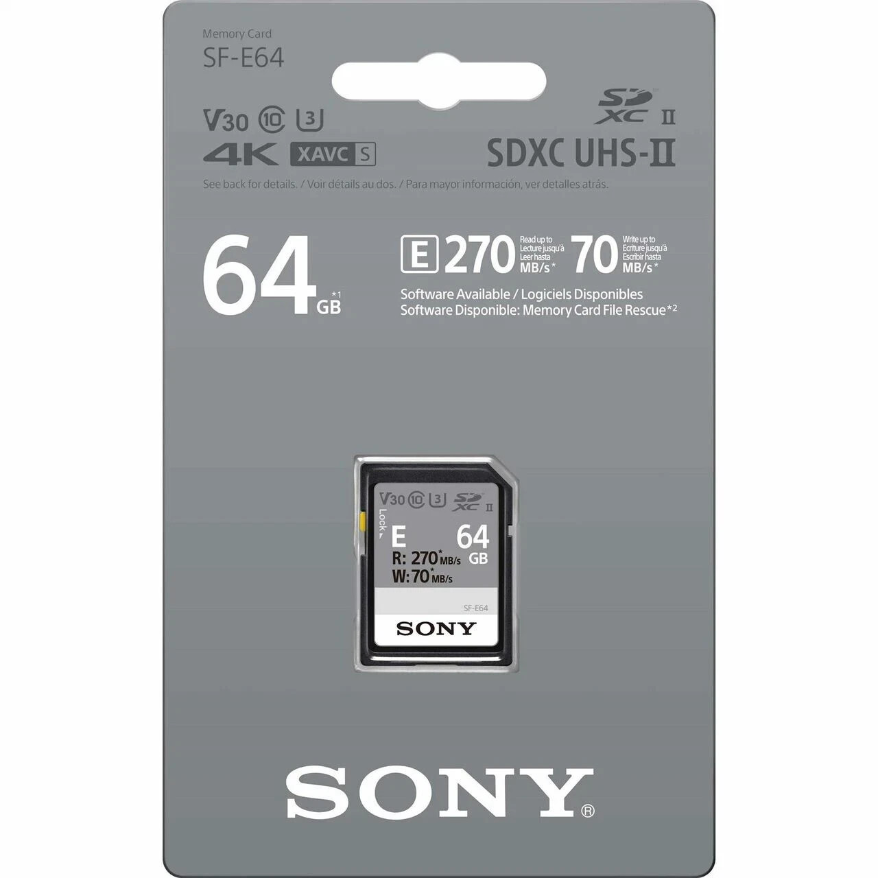 Sony E series SDXC UHS-II Card 64GB, V30, CL10, U3, Max R270MB/S, W70MB/S SF-E6