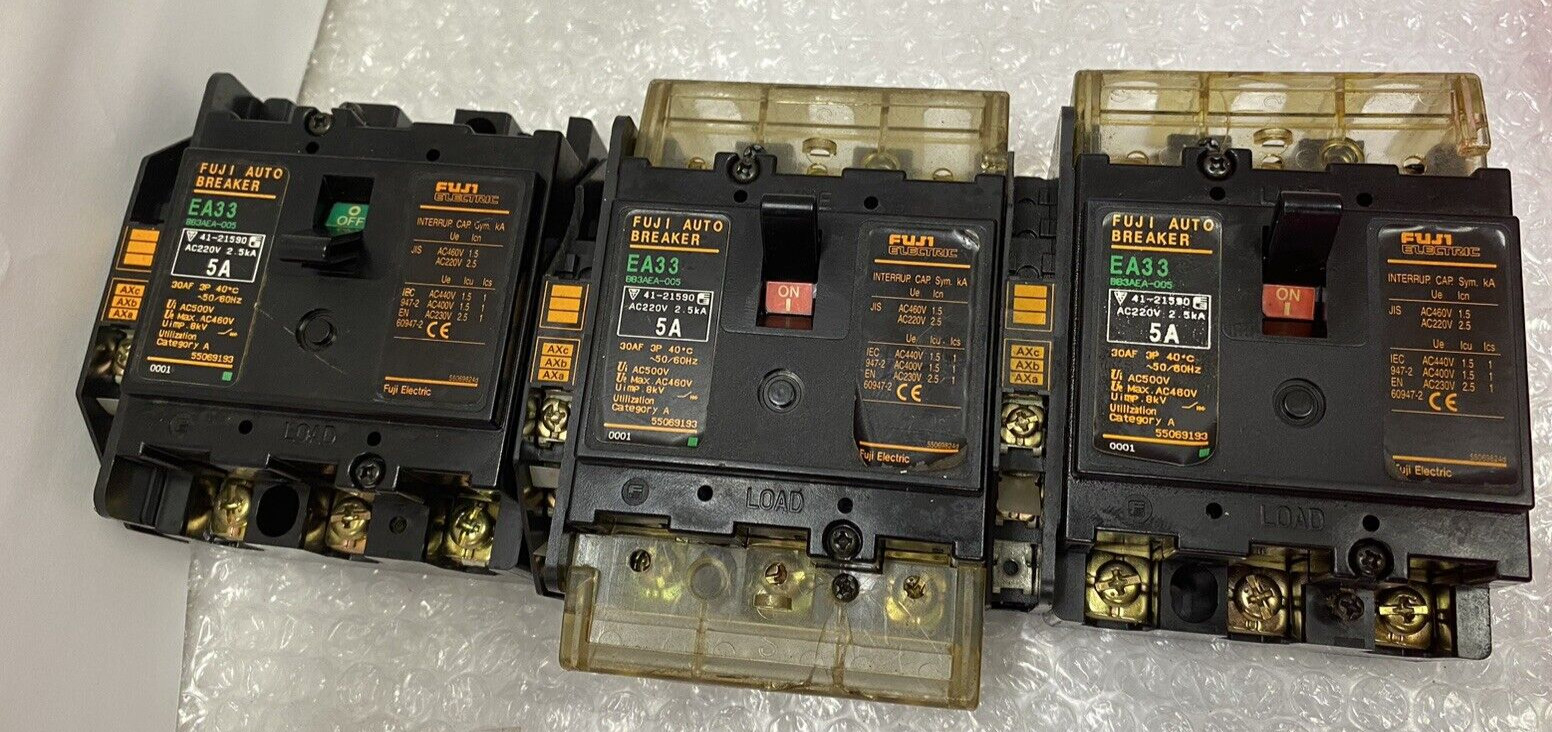 Lot Of 3 Fuji EA33 AC220V Auto Breaker 5A Circuit Breaker 3 Pole 5 Amp