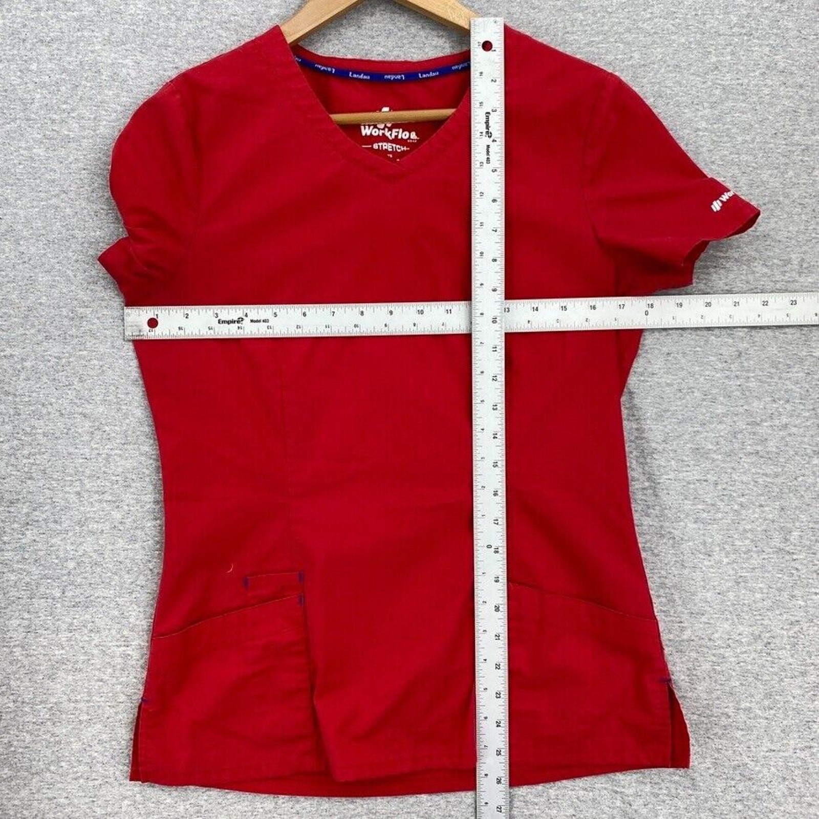как выглядит Landau Scrub Top Womens XS Red Workflow Nursing Vet Medical Uniform Short Sleeve фото