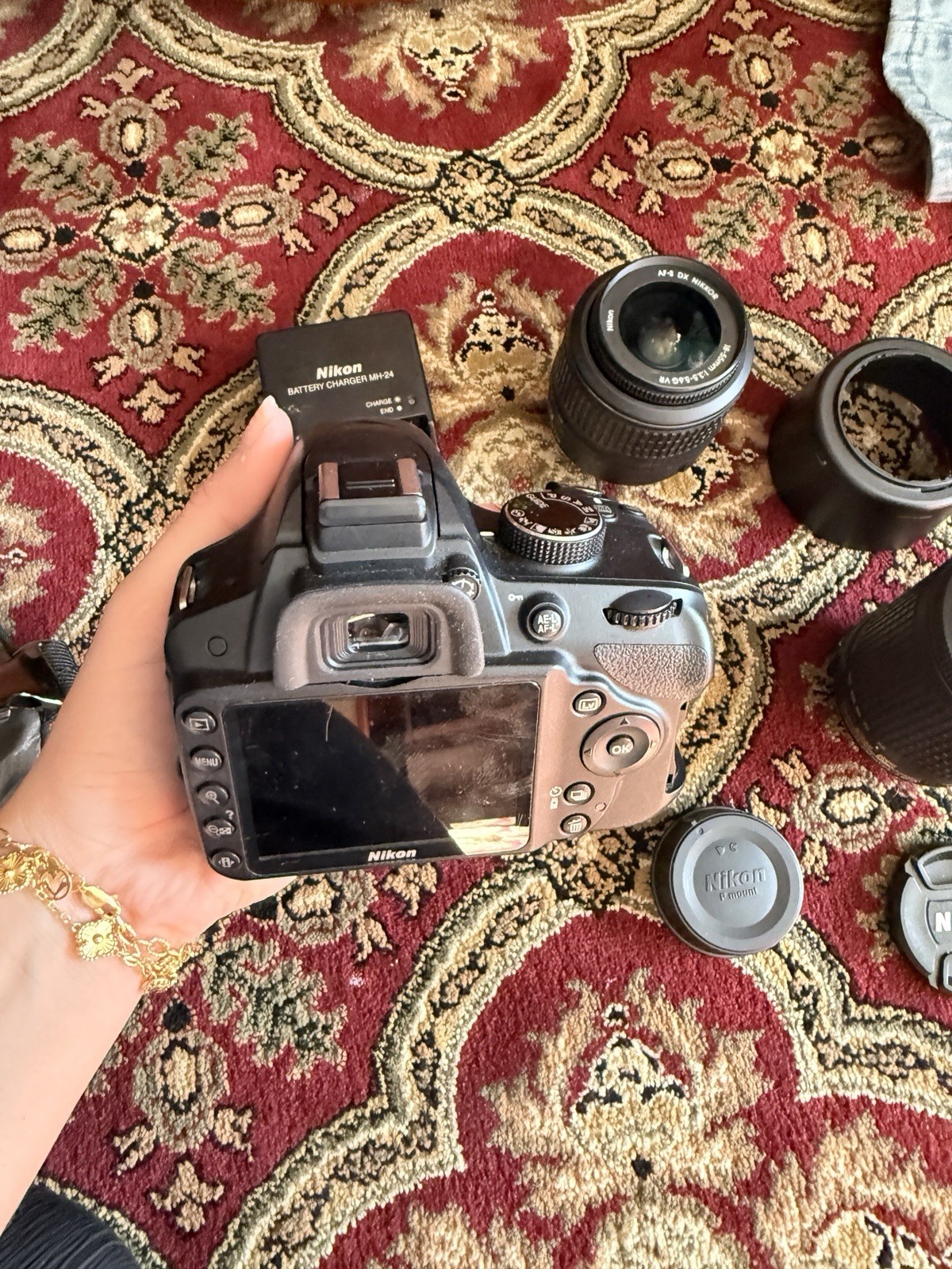 Nikon D3200 Digital SLR Camera 24.2MP Black 3x Zoom with Lenses, Charger, Bag