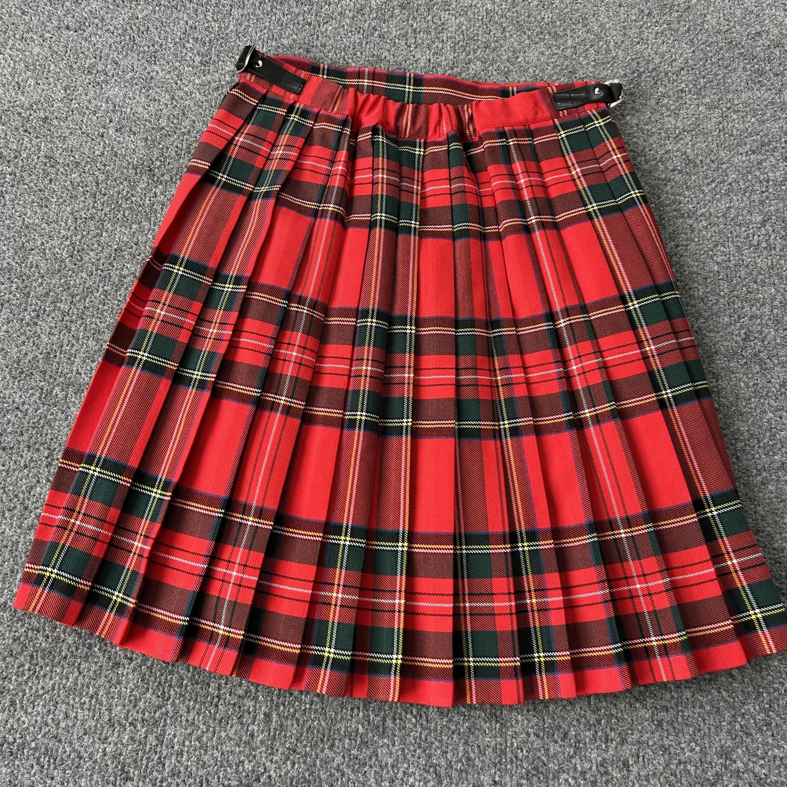 O'Neil Of Dublin Skirt Girls 7-8 Red Plaid Pleated School Kilt Buckle Ireland