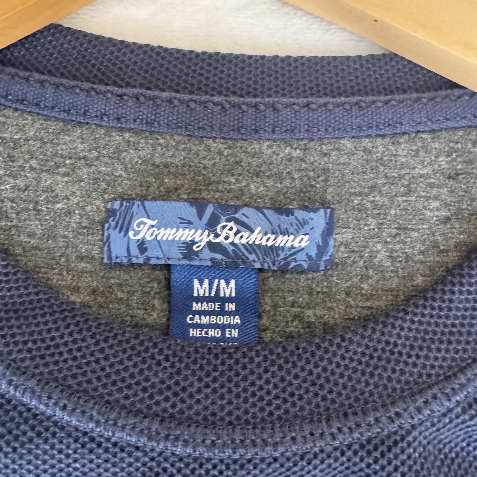 как выглядит Large Navy Blue Waffle Long Sleeve Crewneck Pullover Tommy Bahama Sweater Mens фото