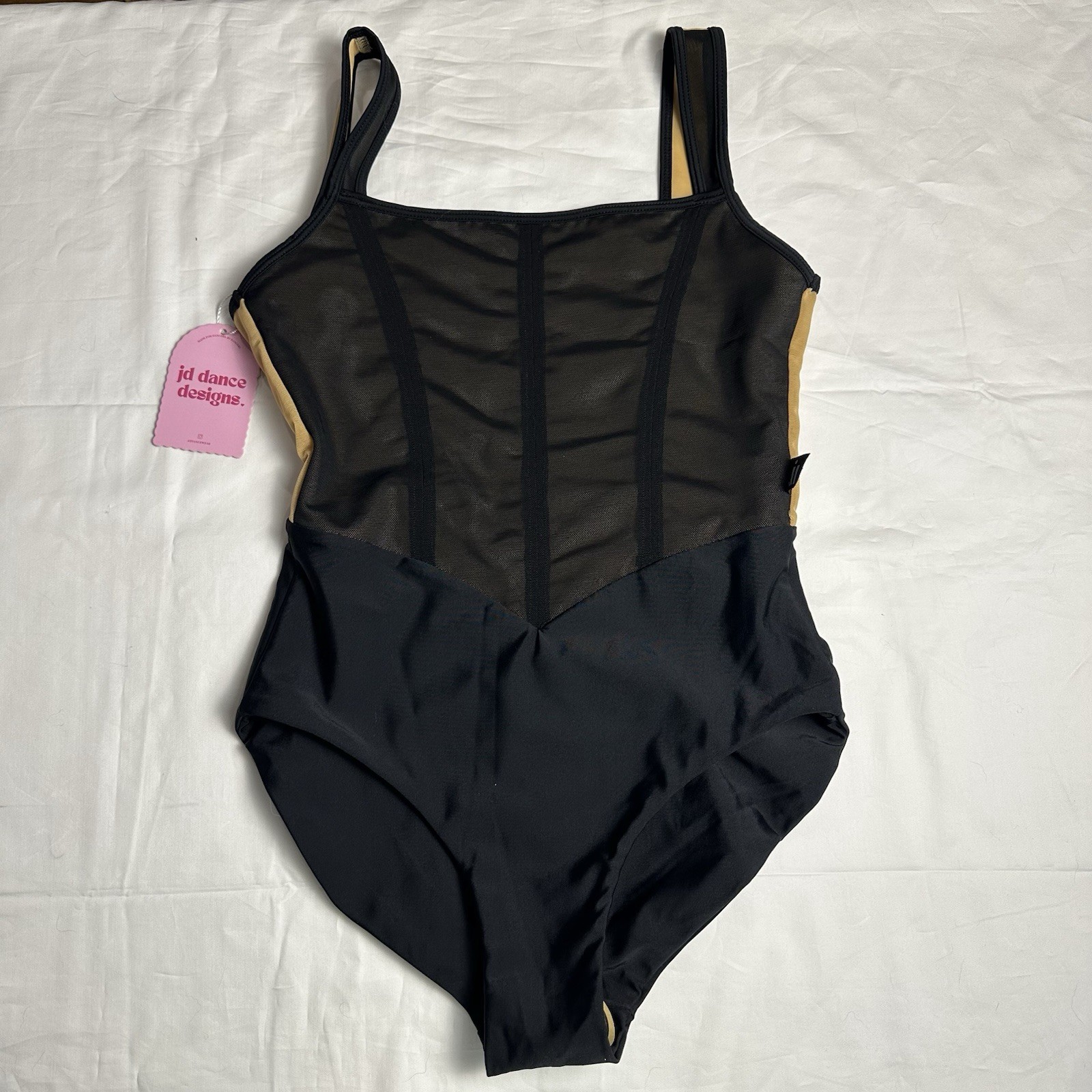 NWT JD Dance Designs Dune Black Nude Ballet Dance Leotard Child XL