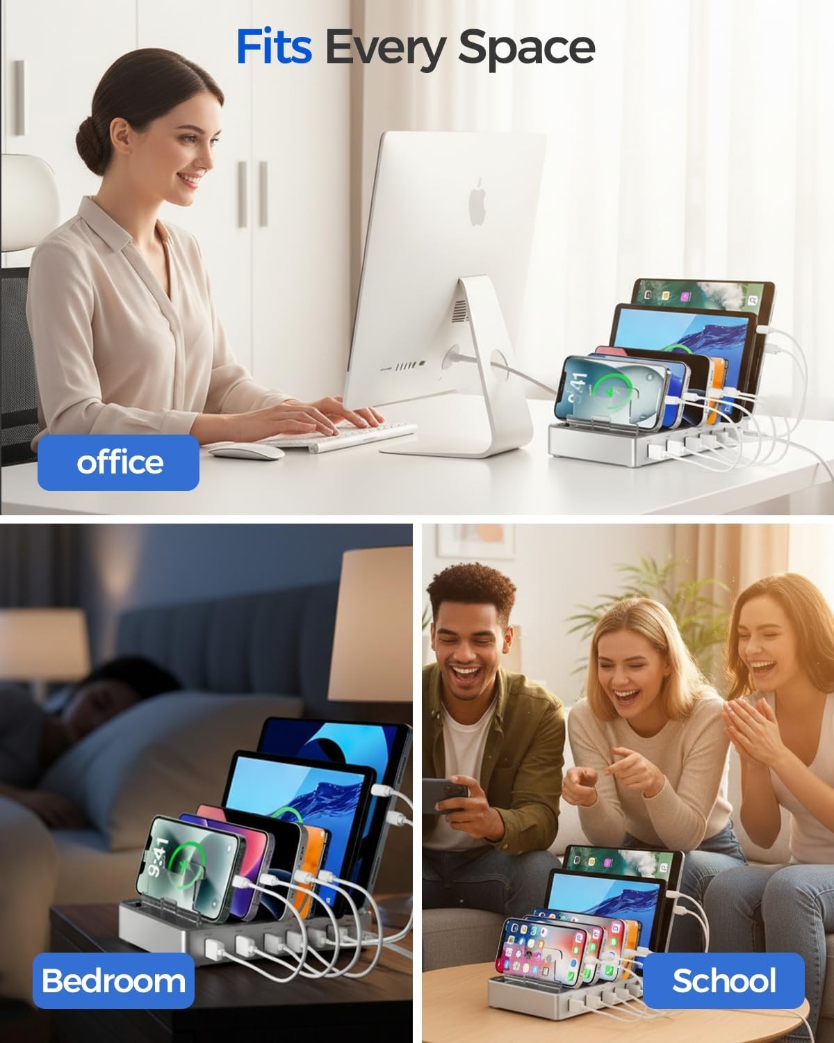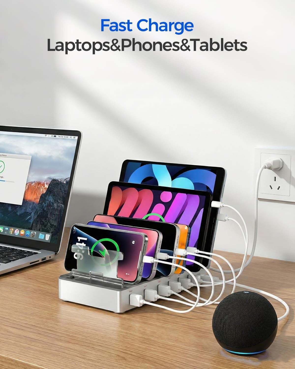 Universal Compatibility: This multi ports charging station works seamlessly with iPhones,A