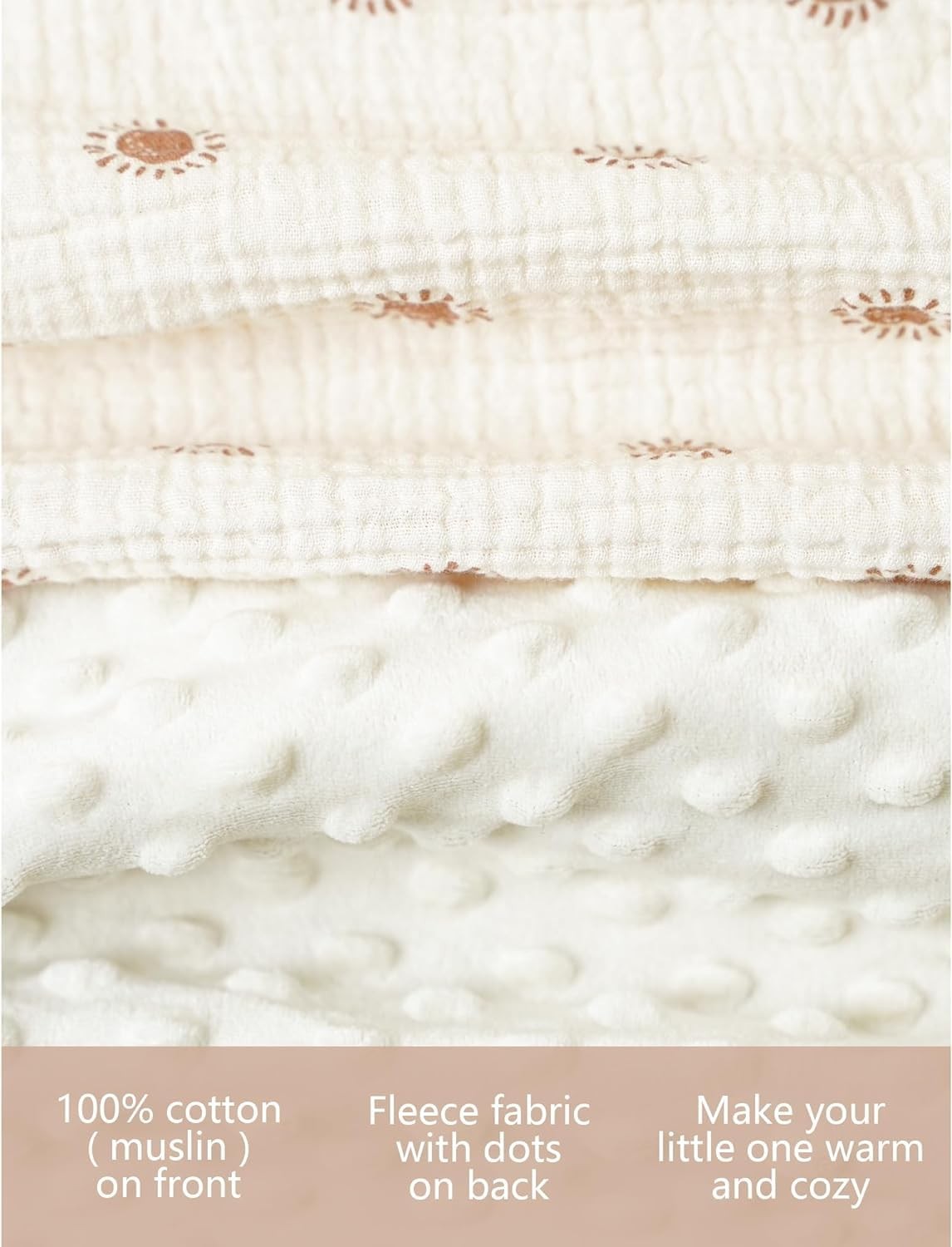 Fabric Type: 100%Cotton(Muslin) On Front,Polyester Fleece On Back