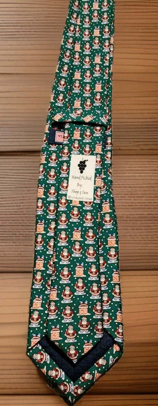 Vineyard Vines Boys Christmas Tie Green Santa Chimney Gifts AOP Silk USA