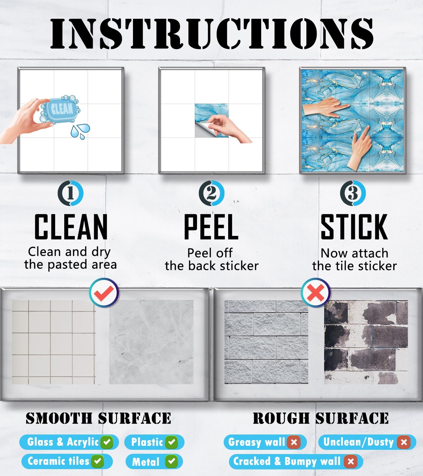 как выглядит 20 Pcs Tile Stickers Peel and Stick Wall Stickers Removable Tile Stickers Bac... фото