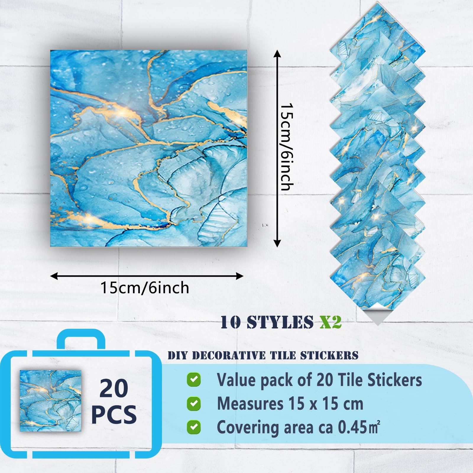 20 Pcs Tile Stickers Peel and Stick Wall Stickers Removable Tile Stickers Bac...