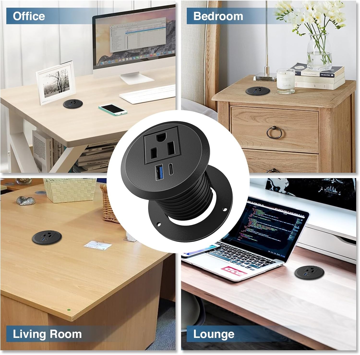 Power Grommet Outlet with USB C and USB A for Fast Charging Multiple Devices