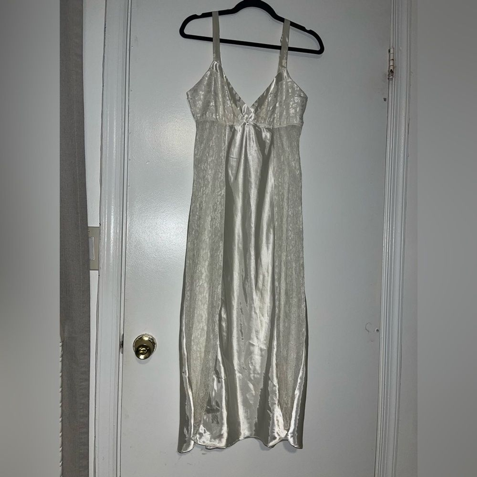 как выглядит Vintage Flora Nikrooz Ivory Satin Lace Slip Dress  Size Medium фото