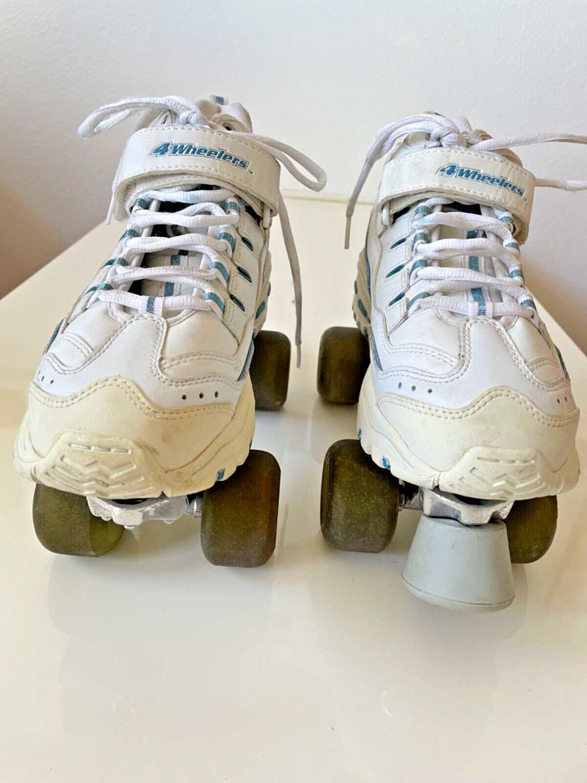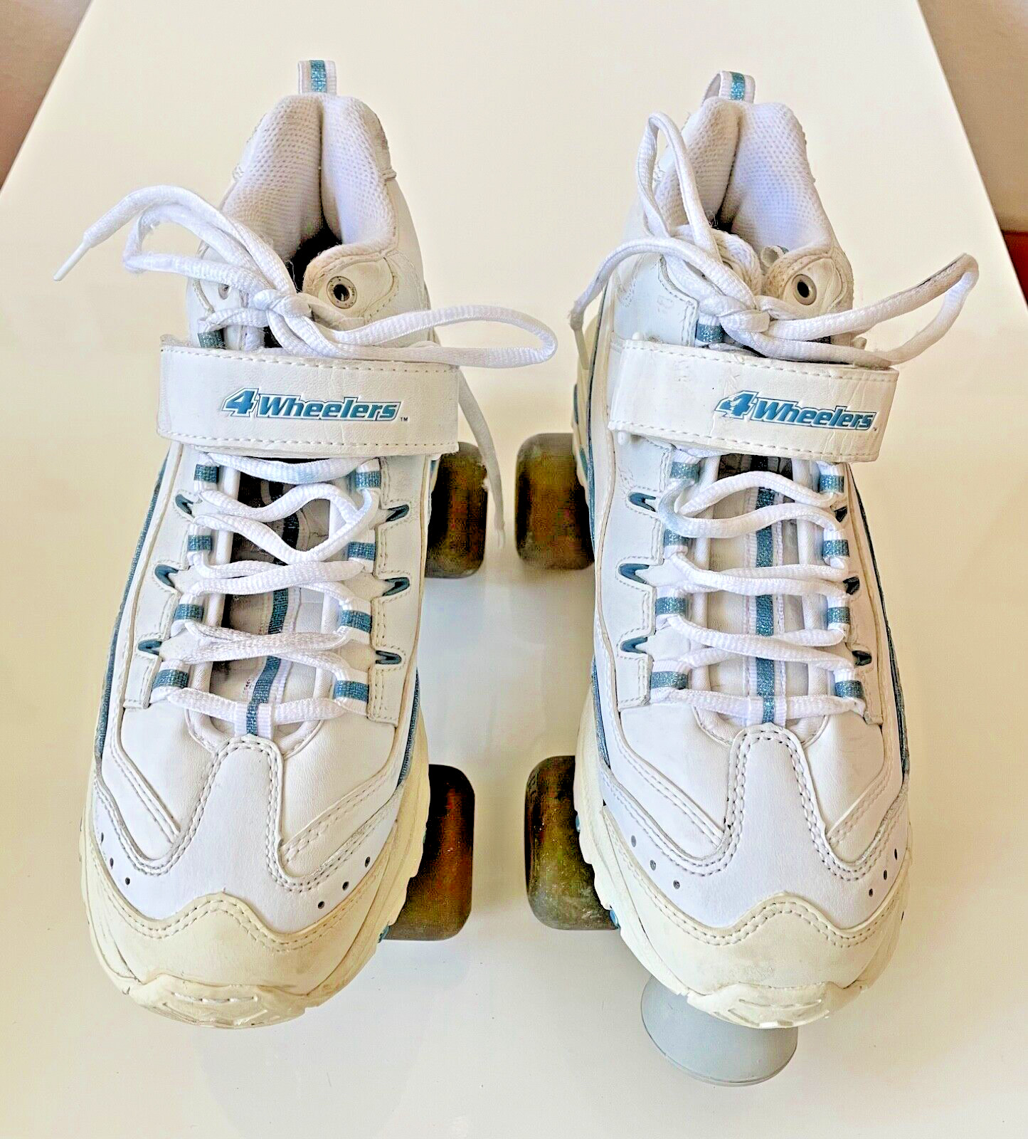 Skechers Roller Skates 4 Wheelers Women's Size 9 White Leather Blue Trim No Box