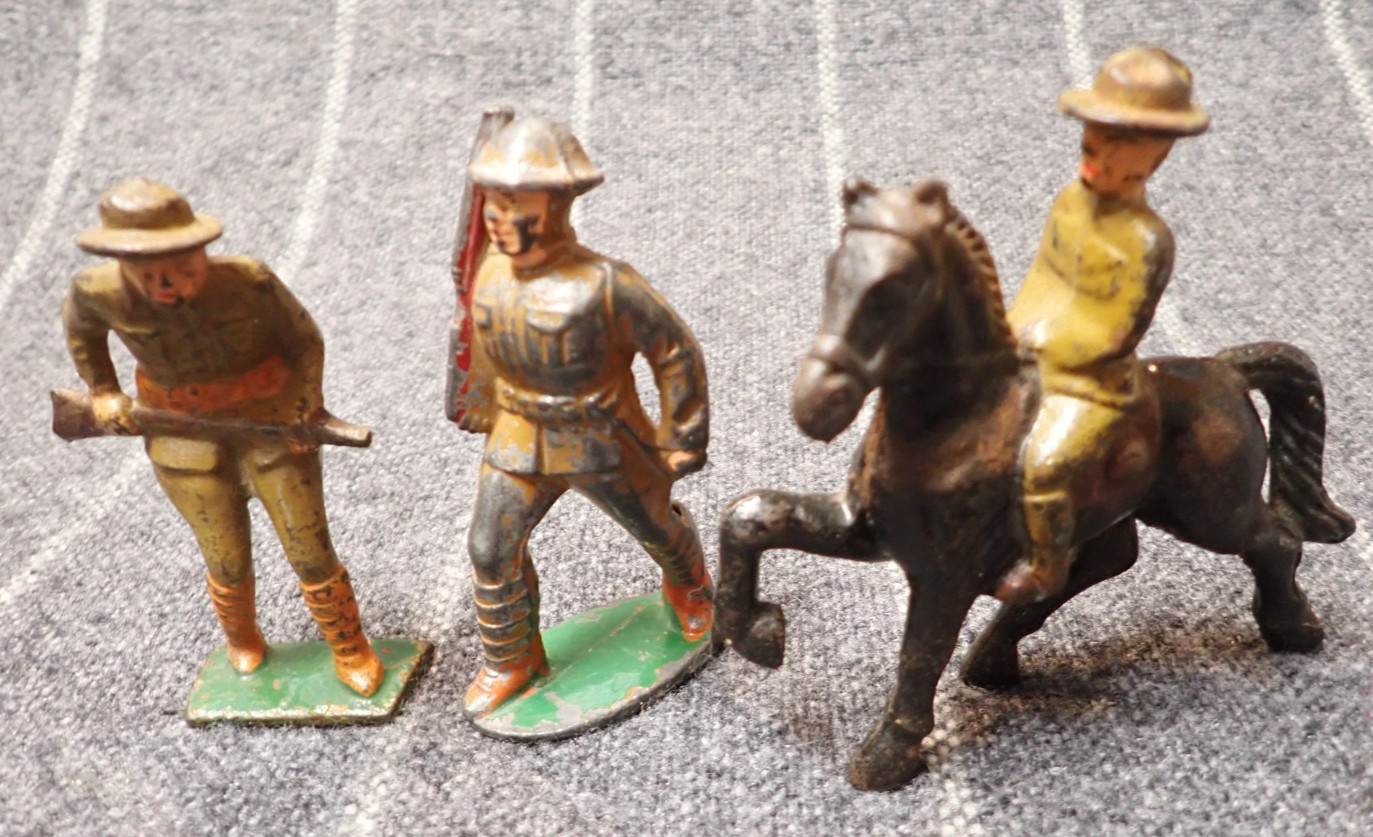 BARCLAY MANOIL Soldier on Horse and 2 Standing Soldiers - 1930's