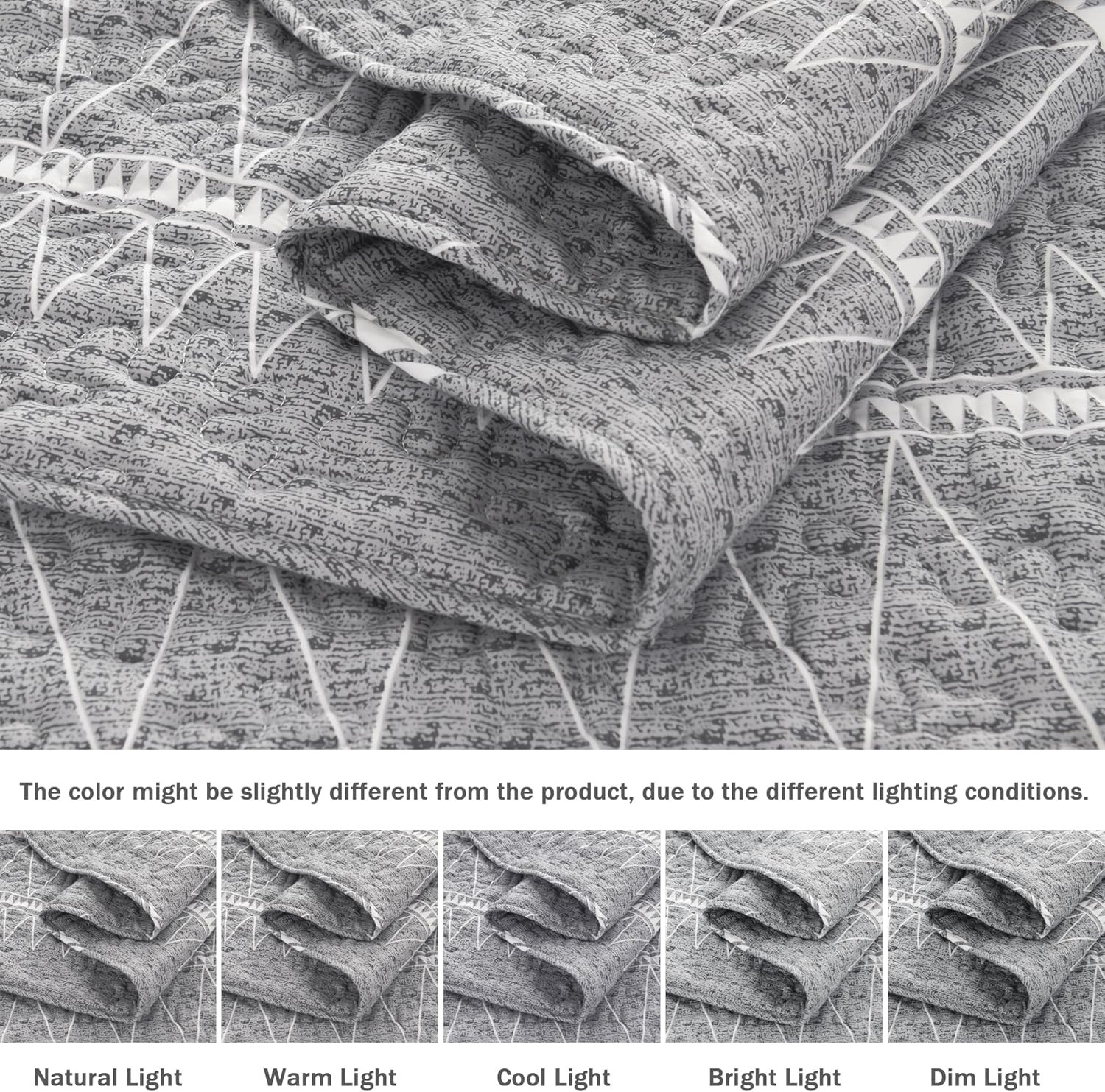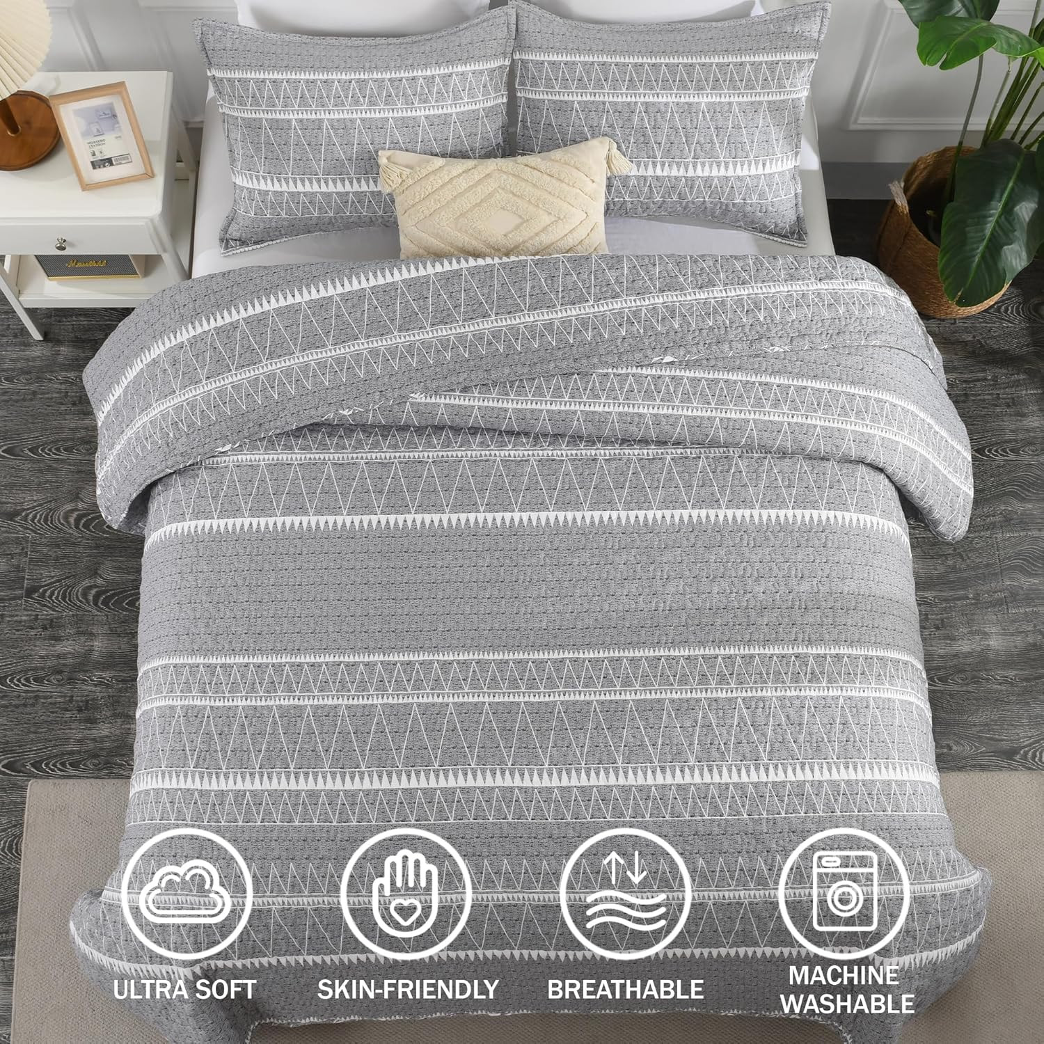 как выглядит Grey Queen Quilt Bedding Set, 3 Pieces 1 Striped Boho Printed Quilt 90X96 Inch фото