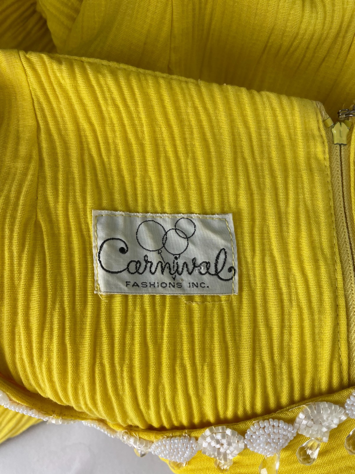Vtg 60s Mod Canary Yellow CARNIVAL sheath dress Bow and Appliques S 32 Bust