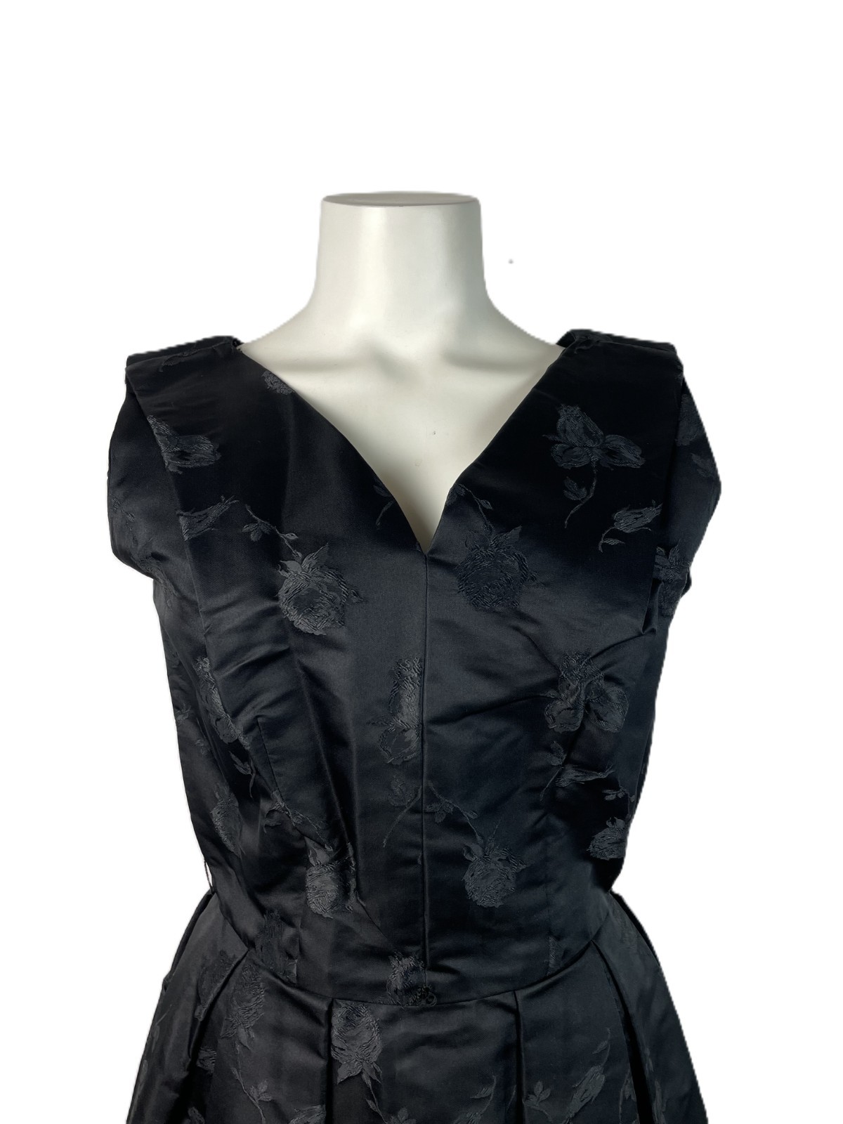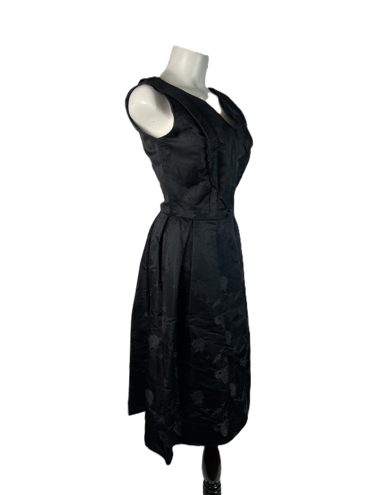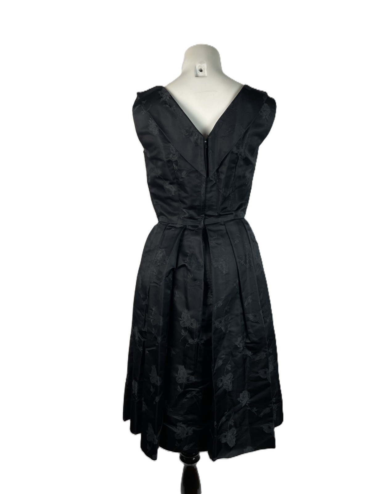 как выглядит VTG 50s Black Silk blend Rose Jacquard Sleeveless Fit Flare Dress R K, S/M фото
