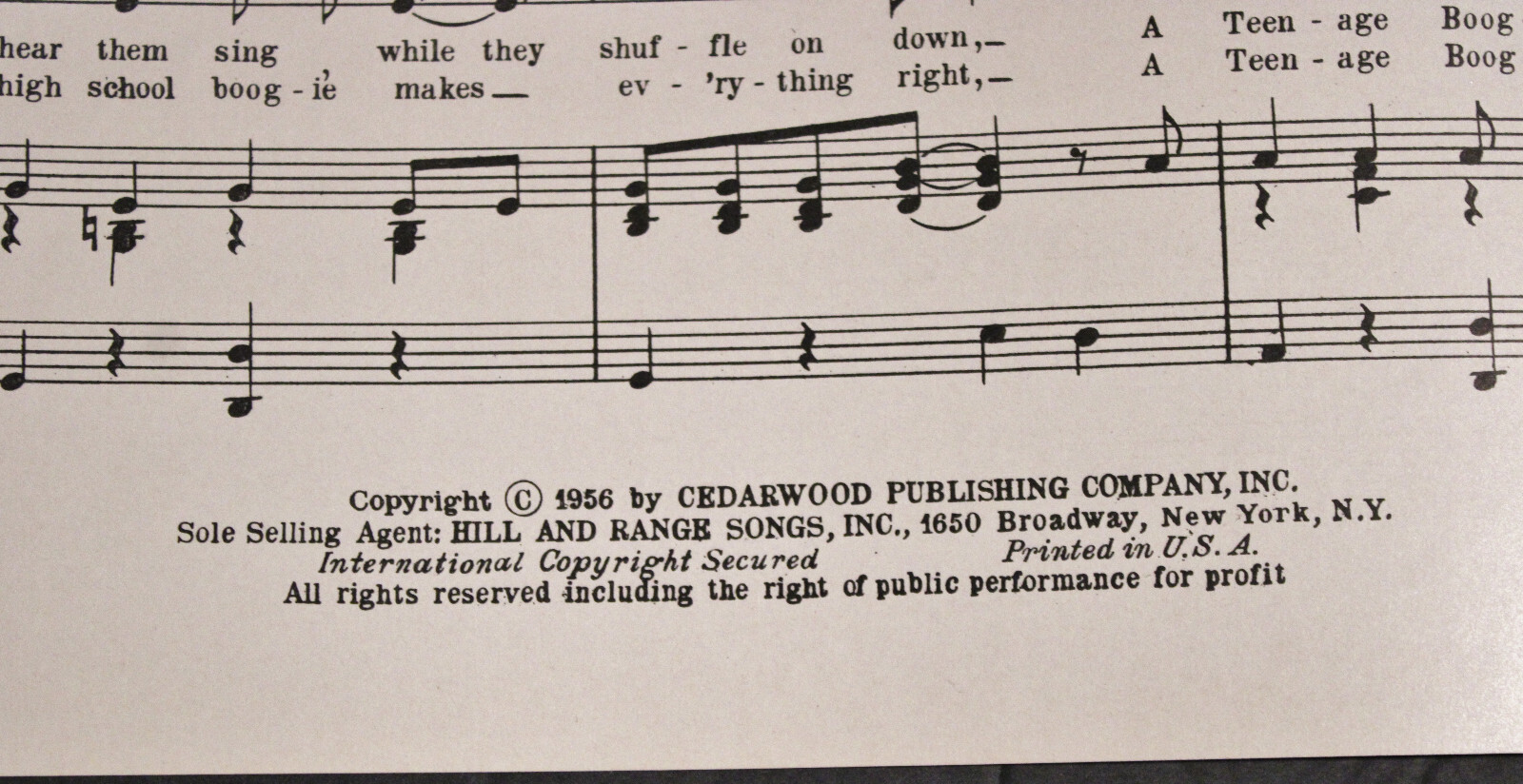 Vintage 1956 TEENAGE BOOGIE WEBB PIERCE SHEET MUSIC D1A