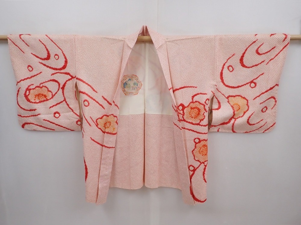 6113T03z490 Vintage Japanese Kimono Silk SHIBORI HAORI Flower Light pink