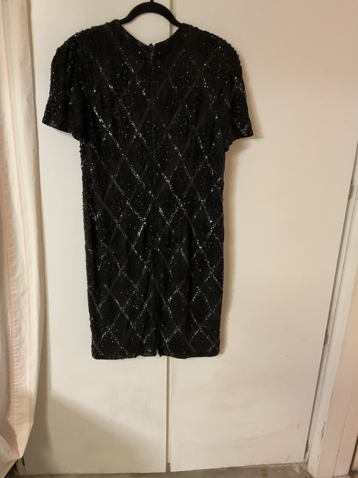 как выглядит VTG 80s Black Dress 100 Silk Sequin Beaded Sz 12 Evening Glamor Party India фото
