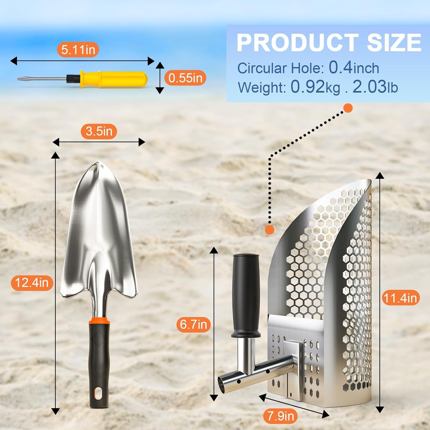 Metal Detecting Sand Scoop 201 Stainless Steel Ideal Beach Hunting Coins Gold.