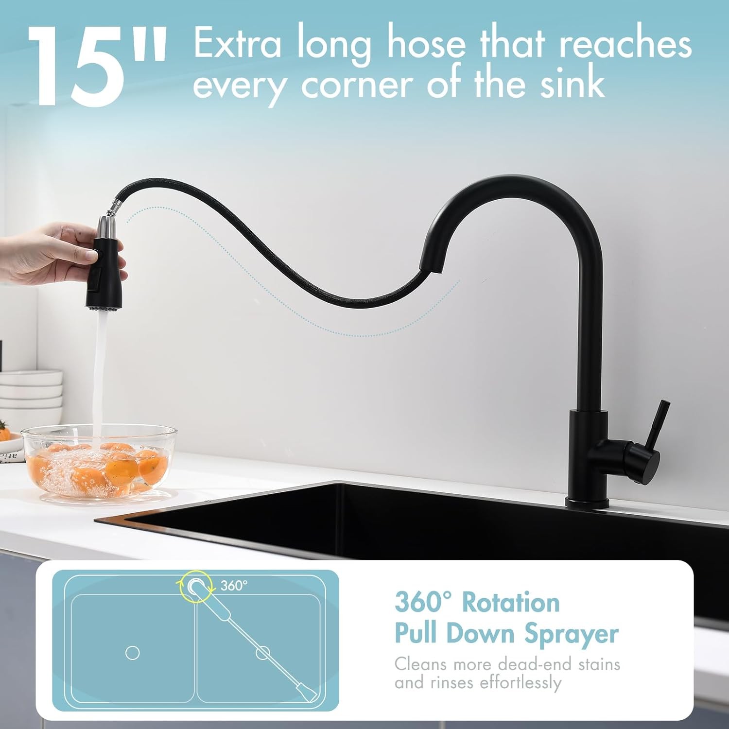 Black Kitchen Faucet W/ Pull Down Sprayer Single Hole Kitchen Sink Faucet