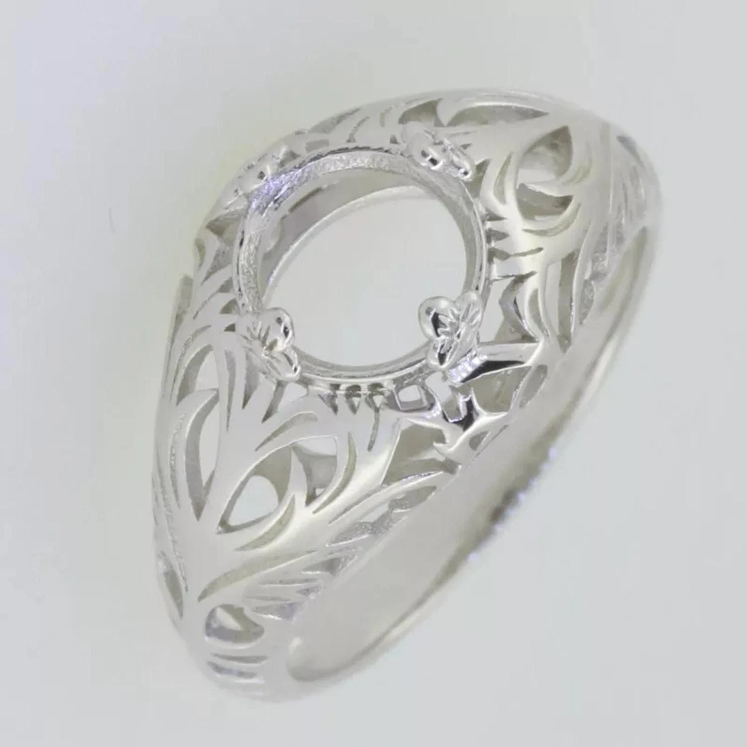 как выглядит 925 Silver Round 10x10MM Cocktail Semi Mount Statement Ring Blank Setting фото