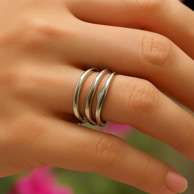 как выглядит Handmade 925 Sterling Silver Triple Band Ring Adjustable Minimalist Stacking фото