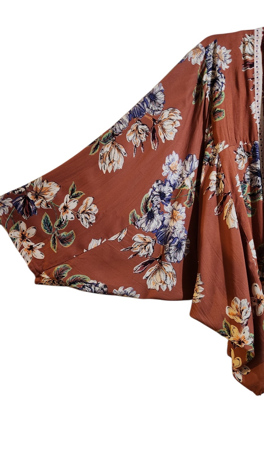 как выглядит Angie Large Floral Print Open Front Kimono Boho Cottagecore Peasant Coverup Beac фото
