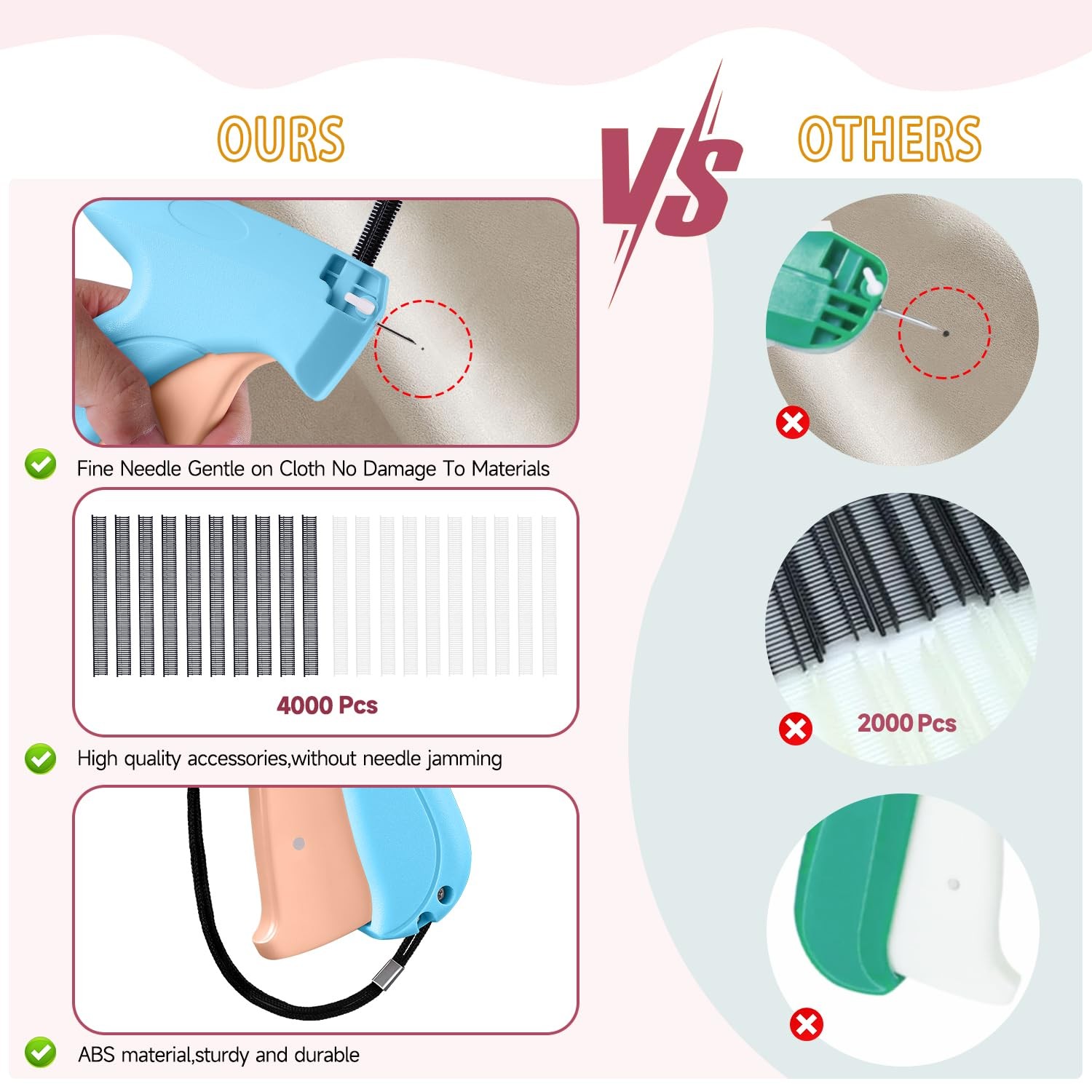Stitchy Micro Tagging Blue and Pink - Total 4000 Fasteners Portable Hemming T...