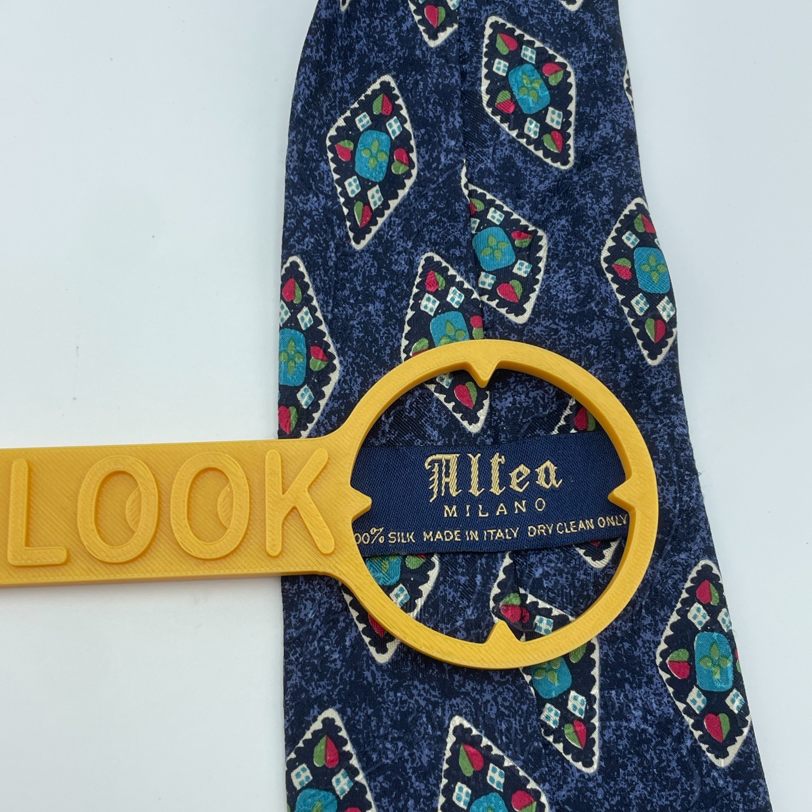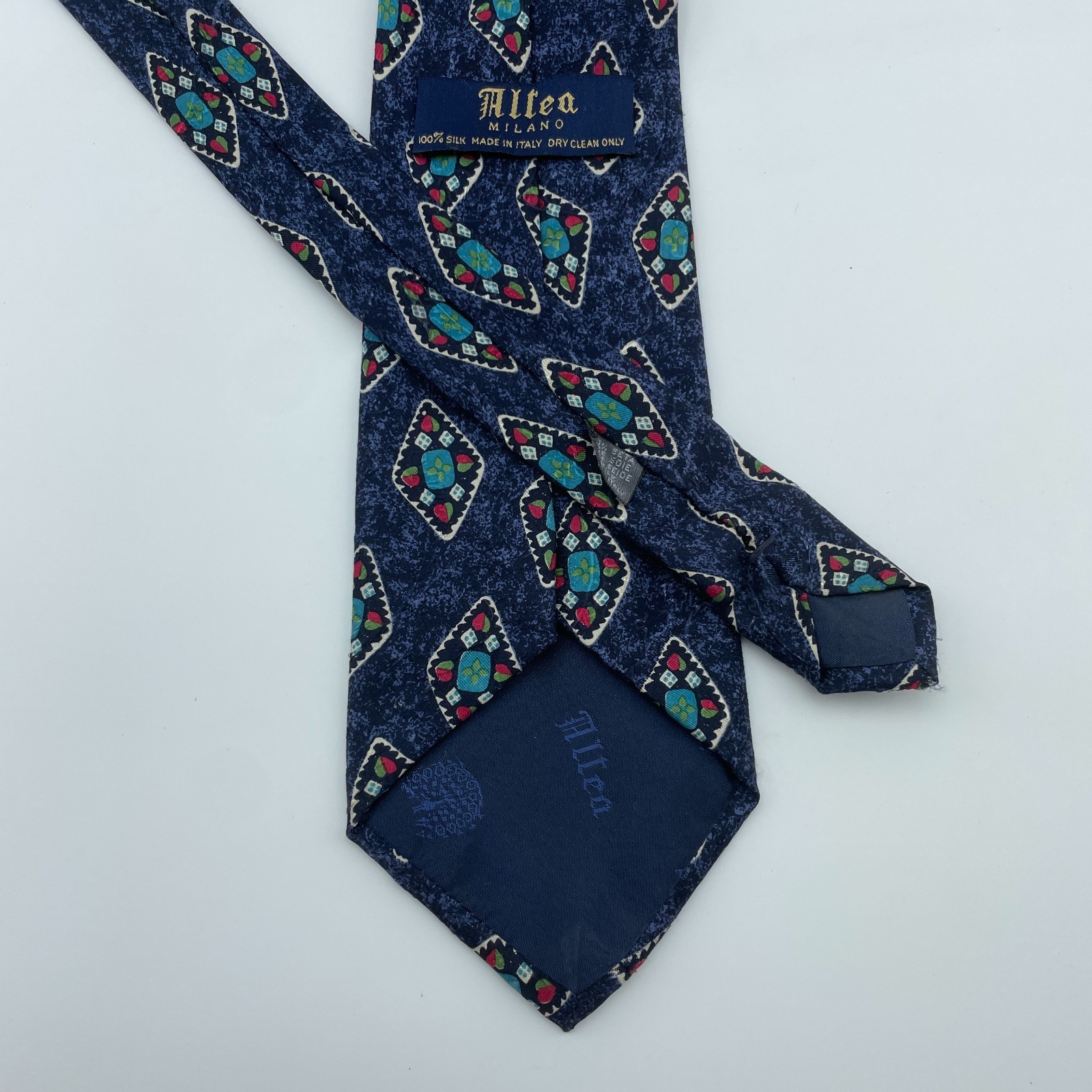 как выглядит ALTEA MILANO Mens Silk Necktie Blue Geometric Medallion Made Italy Office 4x60 фото