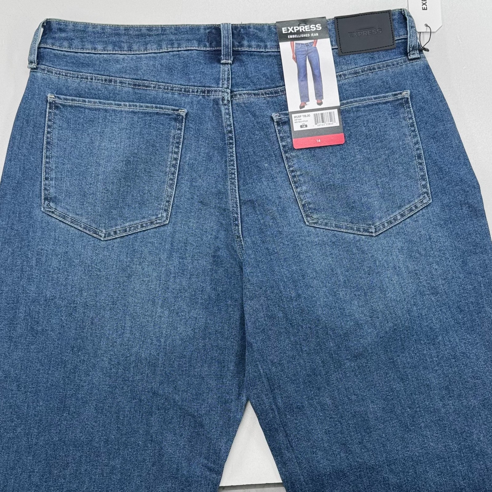 как выглядит NEW Express Embellished Jeans WOMENS Blue Medium Wash Studs SIZE 14 INSEAM 30" фото