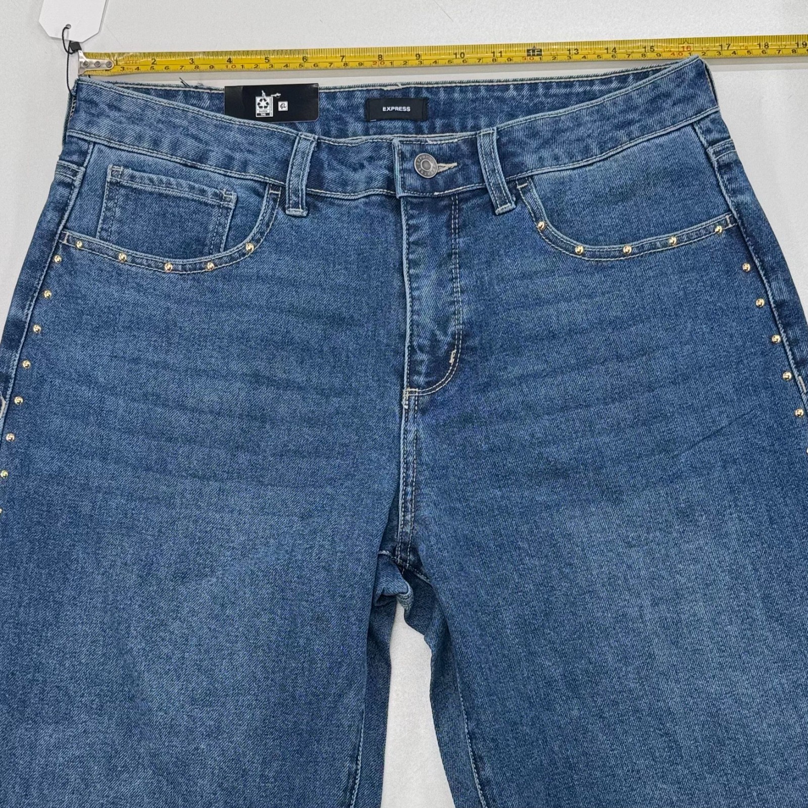 как выглядит NEW Express Embellished Jeans WOMENS Blue Medium Wash Studs SIZE 10 INSEAM 30" фото