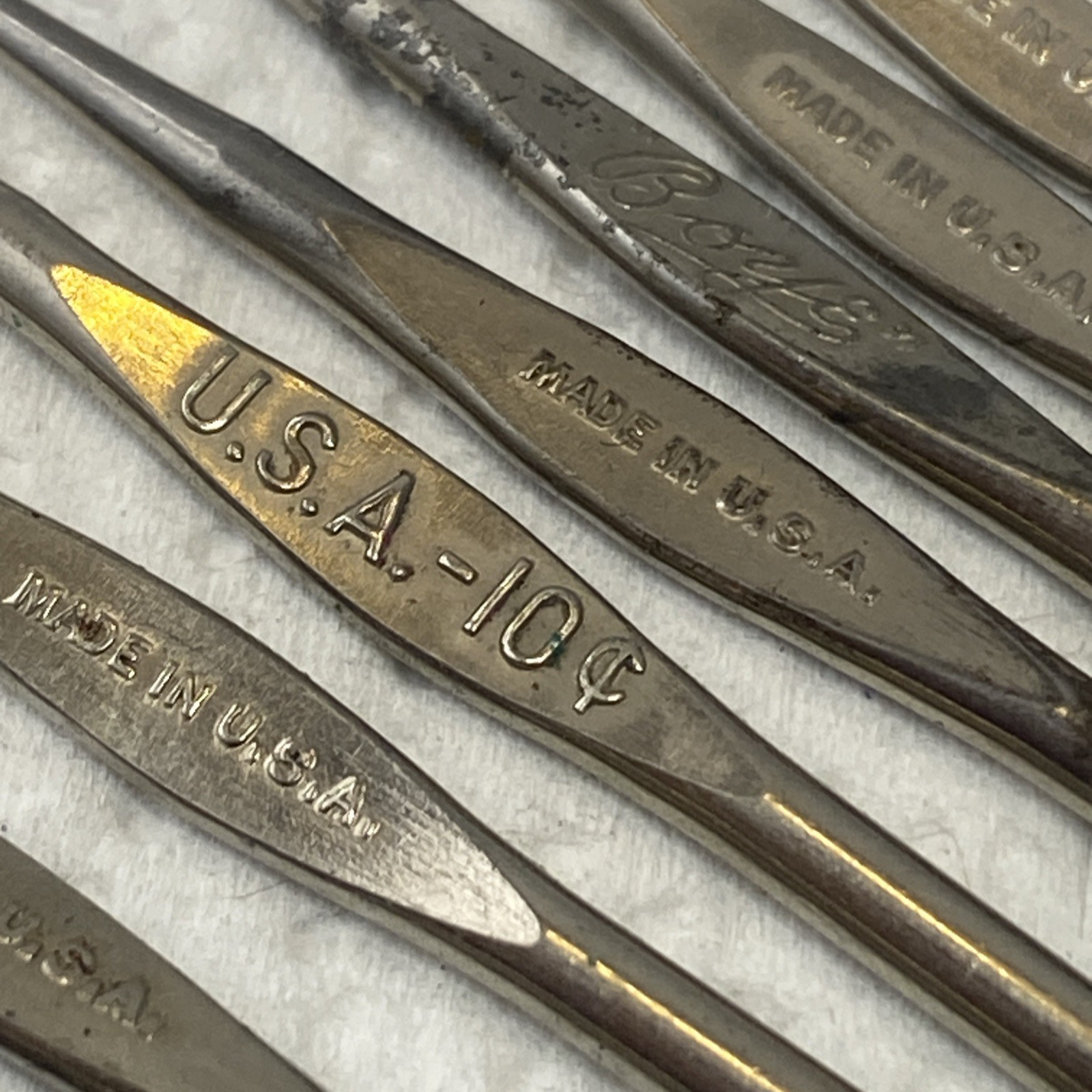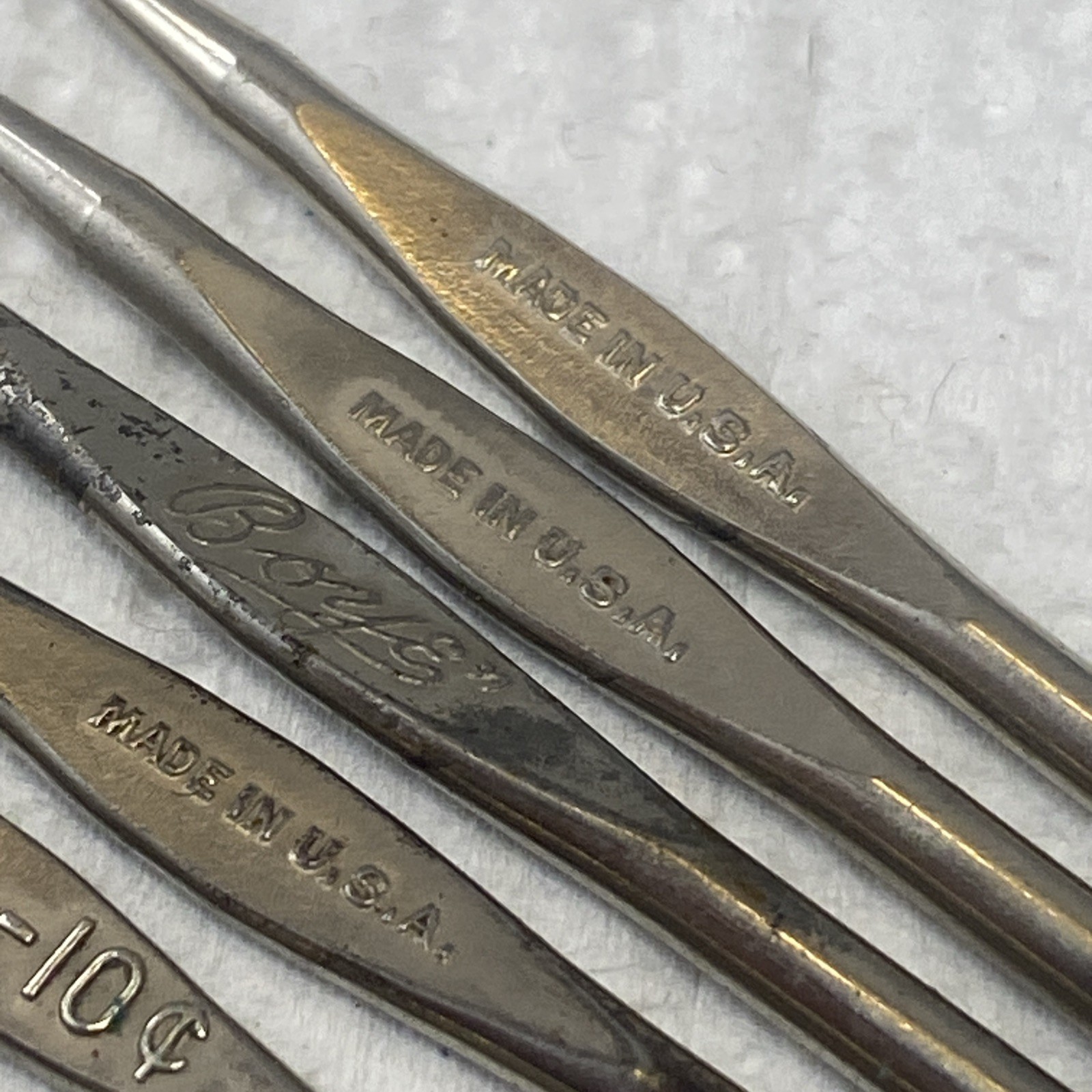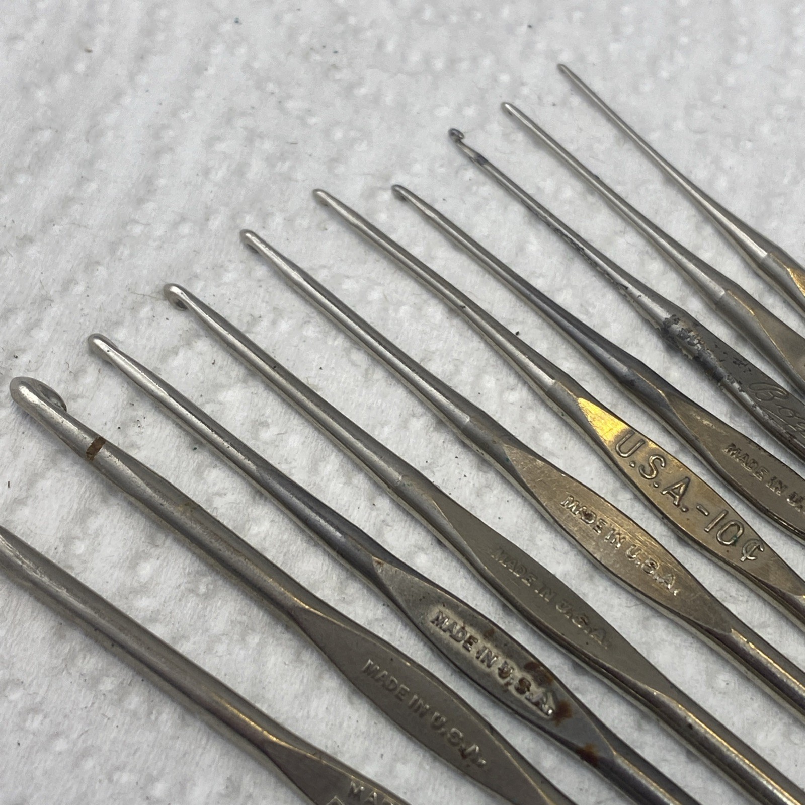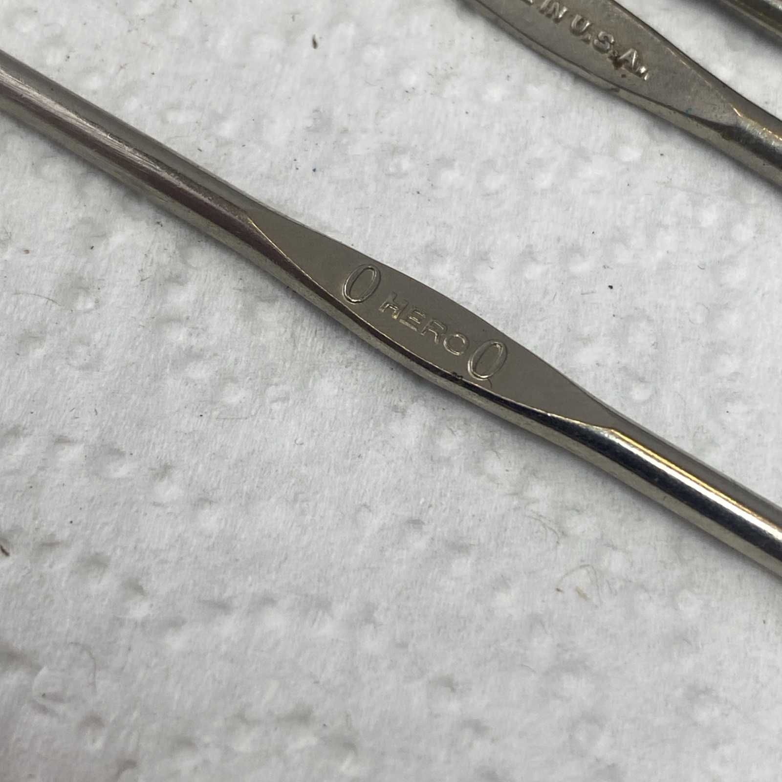 Vtg Metal BOYE Set of 9 Crochet Hooks Plus 1 HERO England Leather Case