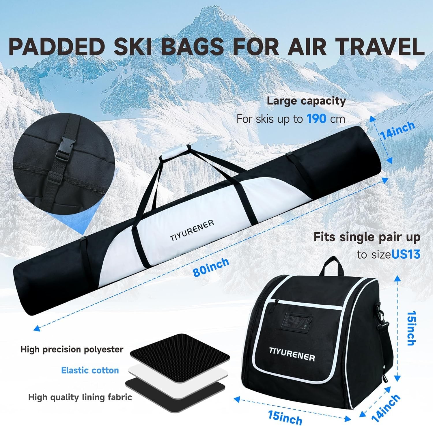 Heavy duty Padded Ski and Boot Bags combo Set easy carry waterproof travel bag