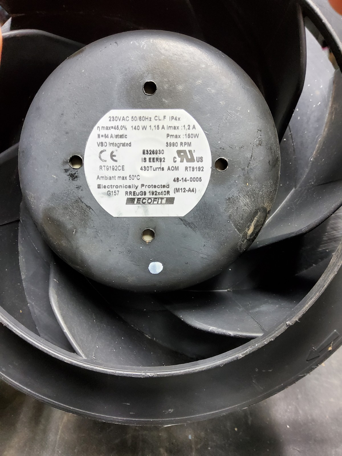 Moderate-sized Electric Fan ebm-papst AC axial fan.