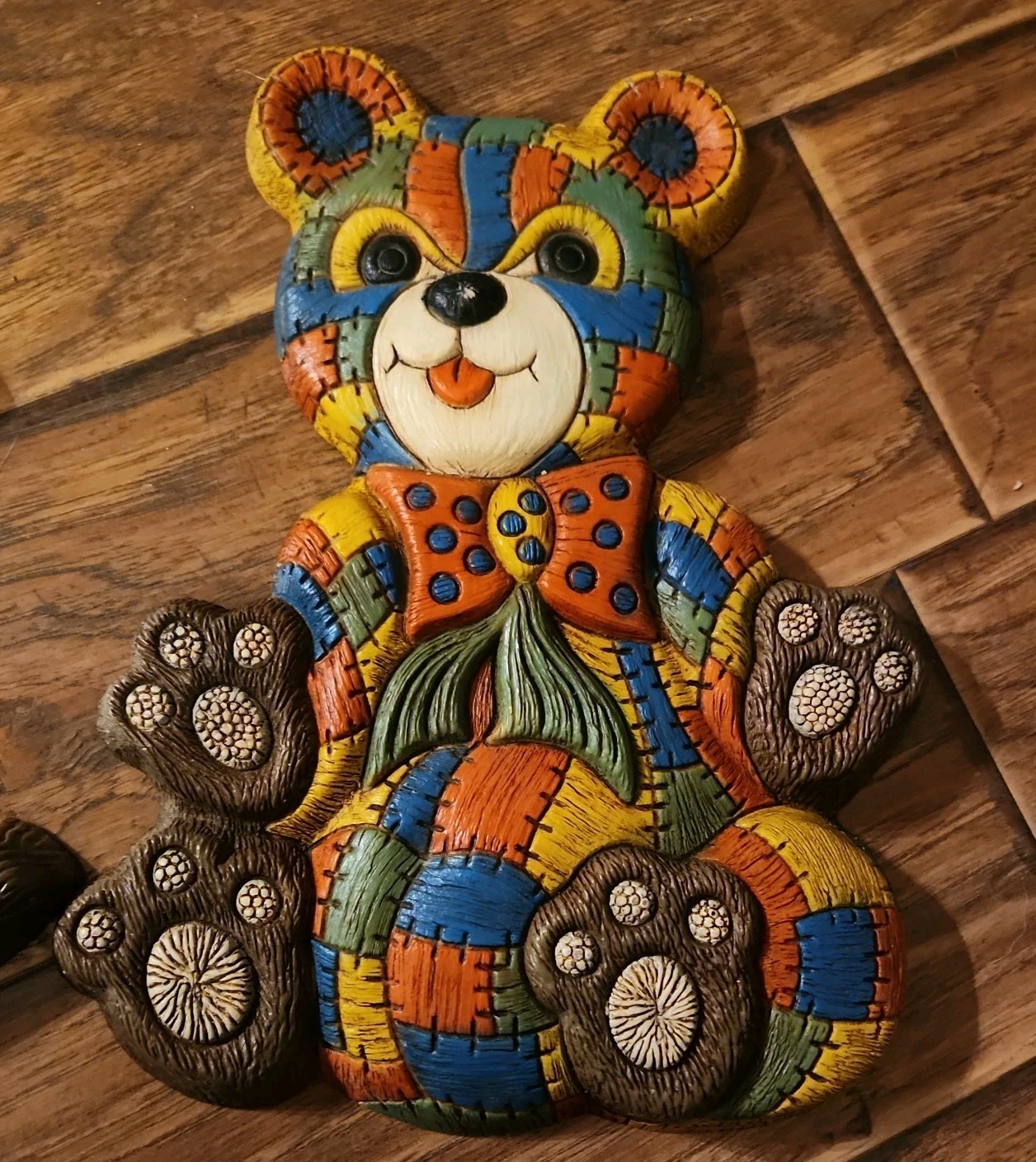 как выглядит VTG Patchwork Foam Craft Nursery Rocking Horse Teddy Bear Wall Hanging MCM 70s фото