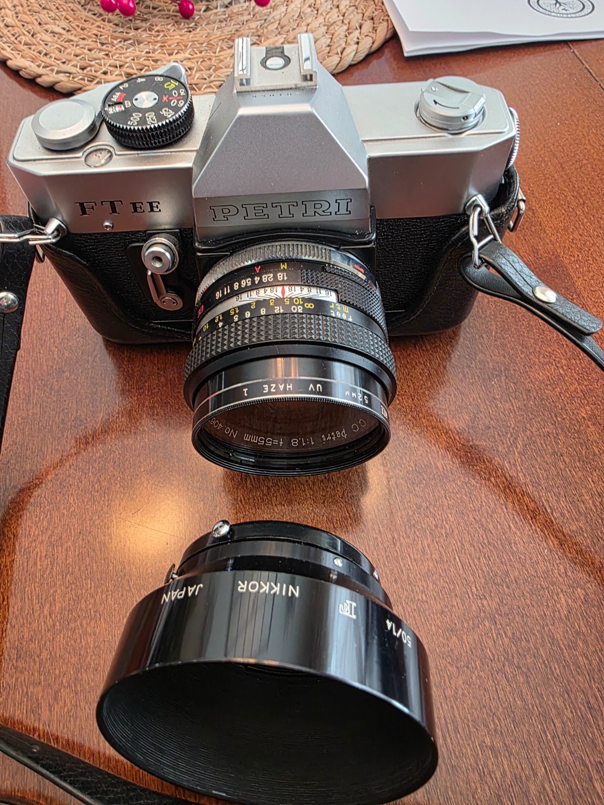 Petri FTEE 35mm camera with three lenses, case - Vintage, original owner