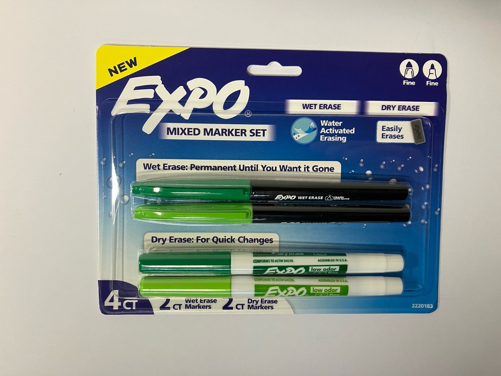 Expo 4ct Fine Mixed 2 Dry / 2 Wet Erase Marker Assorted Green NEW Lot of 6