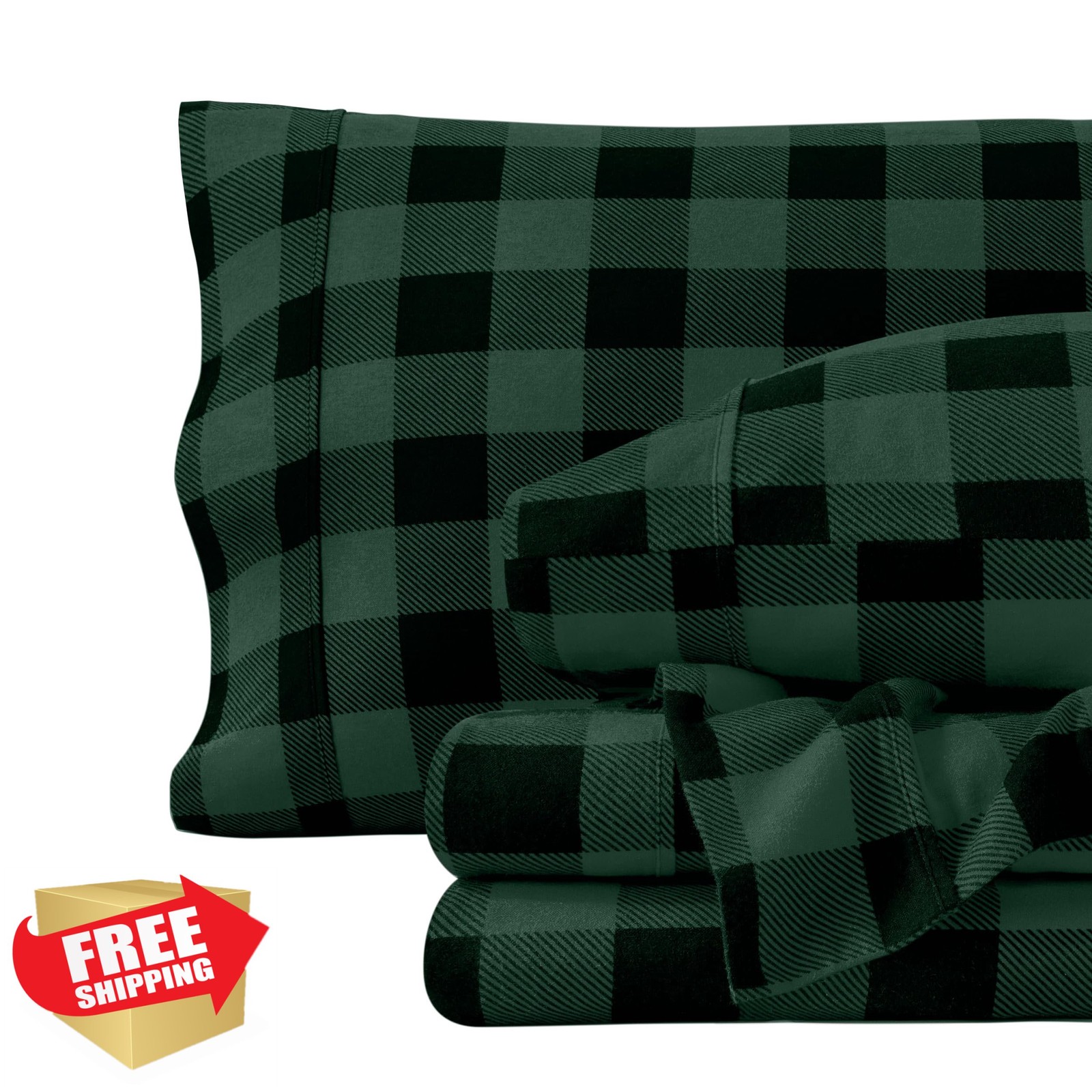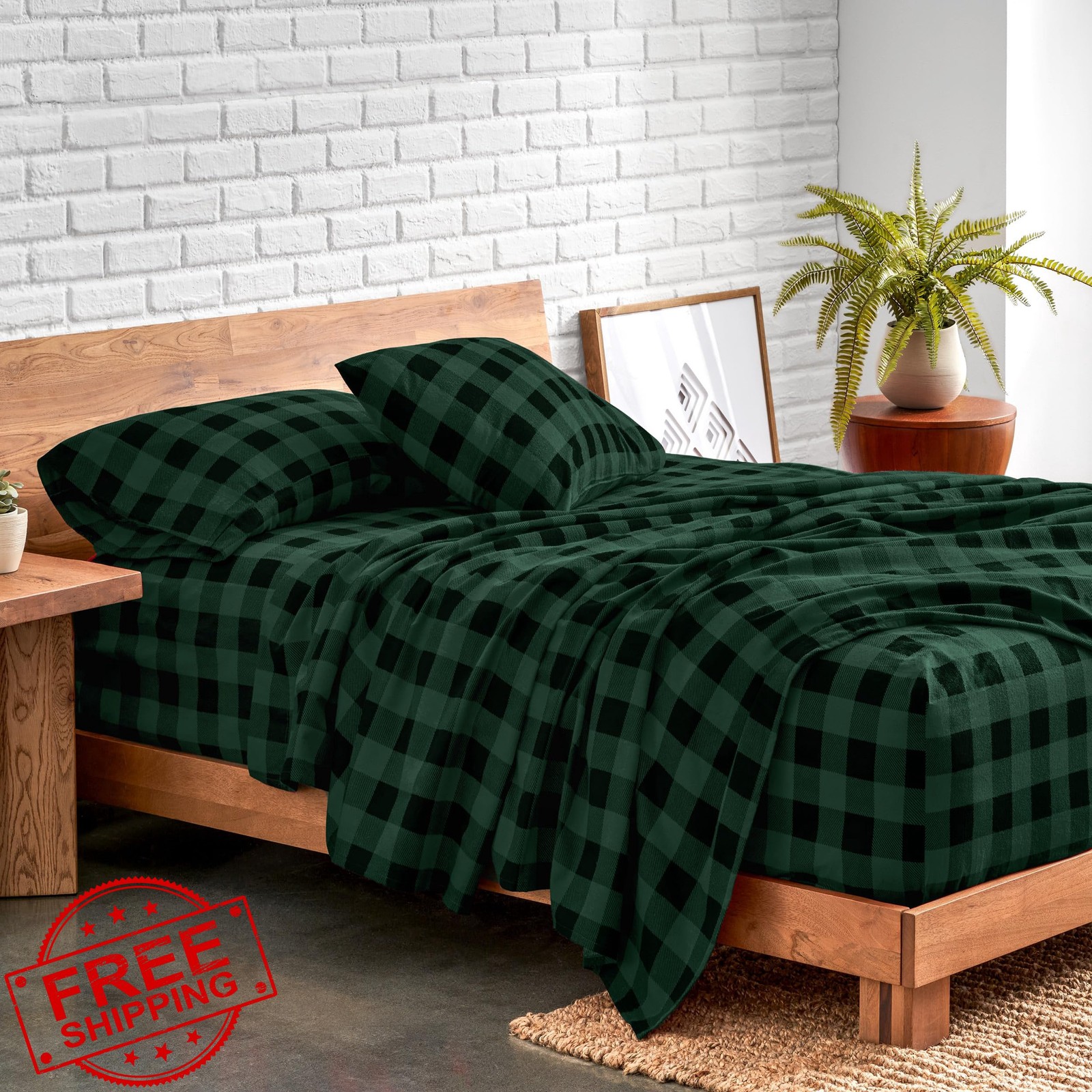Bare Home Full Flannel Sheet Set, Buffalo Plaid Forest Green/Black