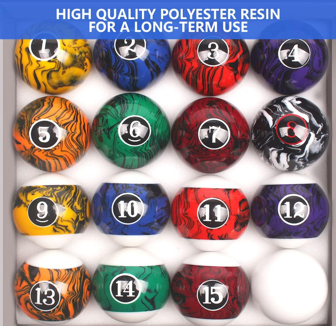 Billiard Balls Set Pool Table Balls Marble-Swirl Classic Style 16 Ball Set