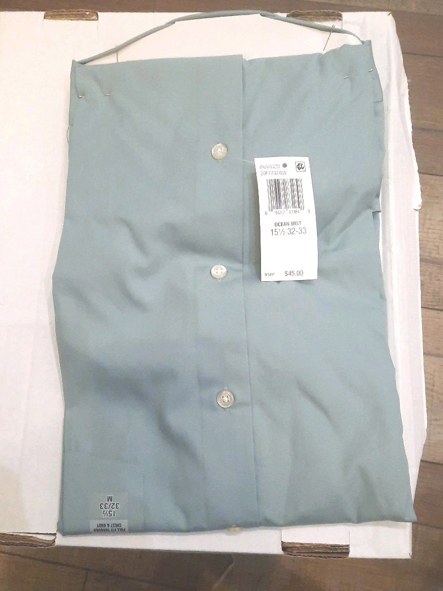 Van Heusen Poplin Reg Fit Wrinkle Free Men's Dress Shirt Sz 15 32/33 Ocean Mist