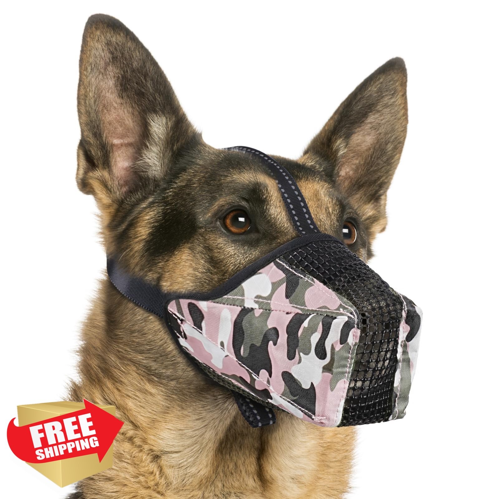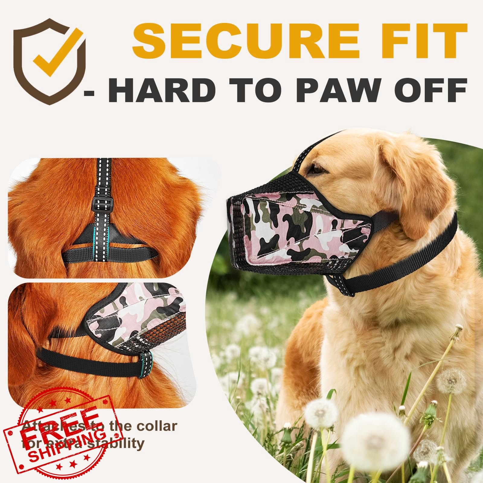 Pawfun Mesh Dog Muzzle Pink XL Breathable Biting Chewing Reflective Straps