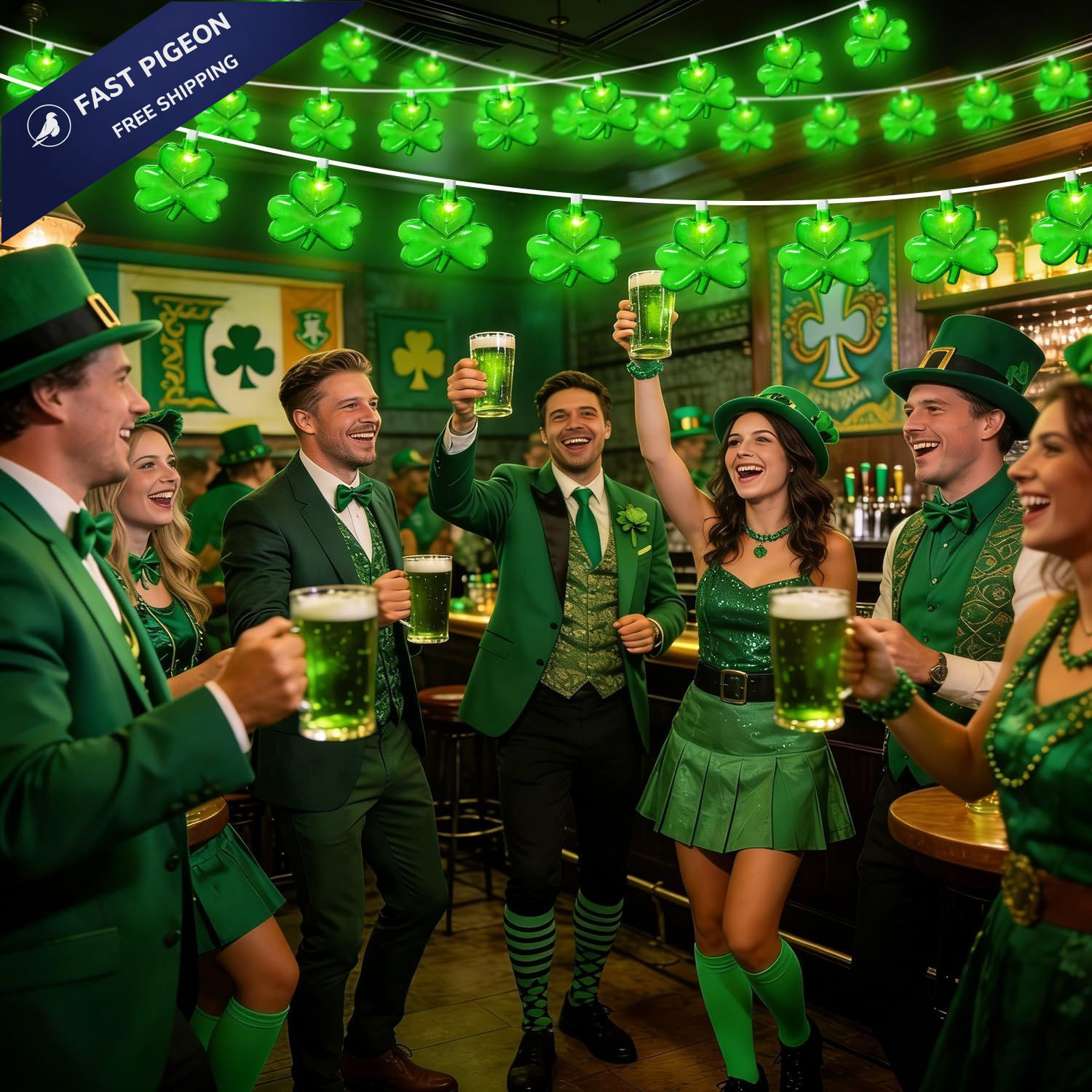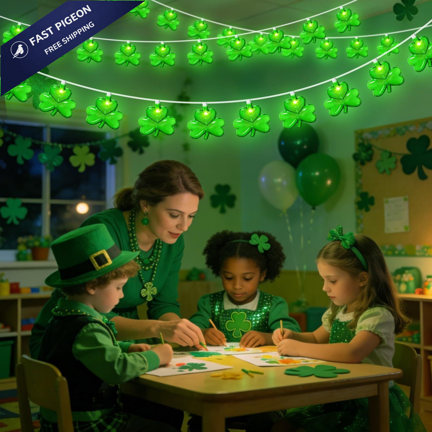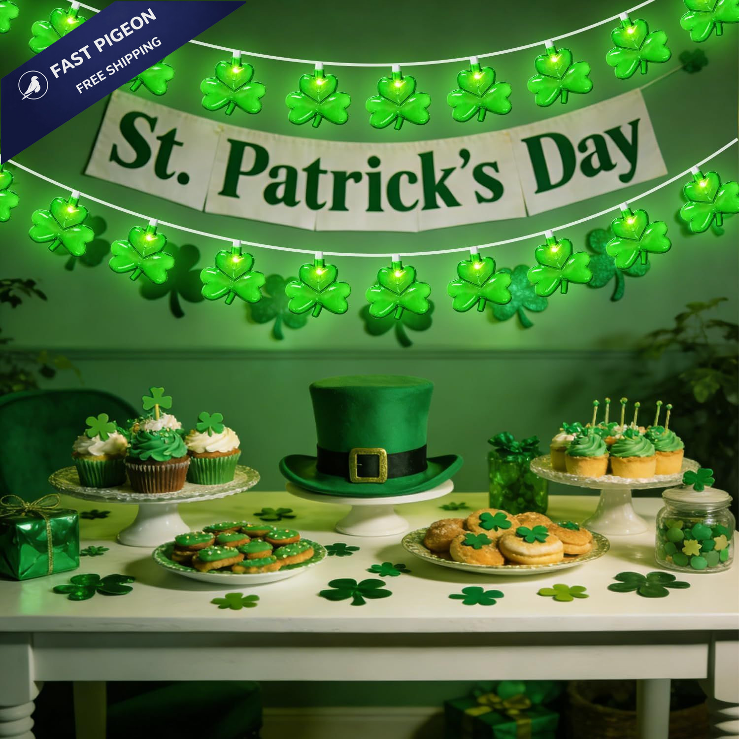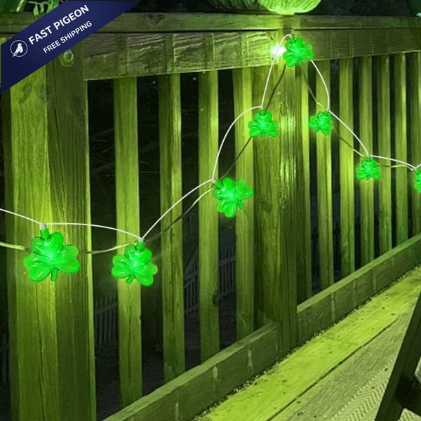 20 LED Clear Green Shamrock String Lights, 12FT St 12Ft, 20LED-Shamrock