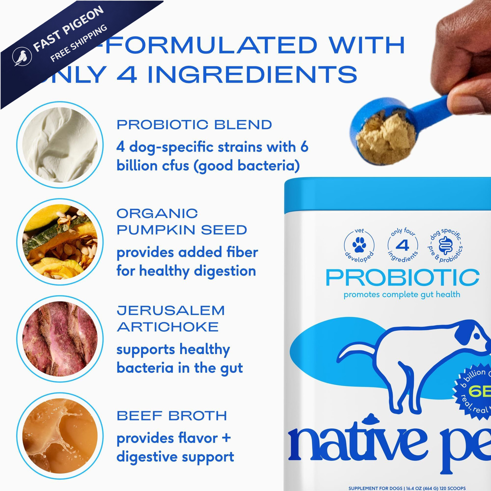 Native Pet Probiotics for Dogs - Dog 30 Probiotic Scoops,