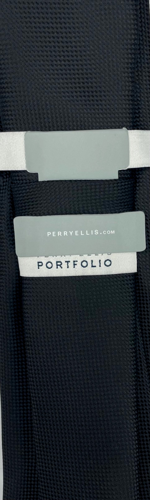 как выглядит PERRY ELLIS Portfolio Mens 100 Polyester Tie Black Textured Solid фото