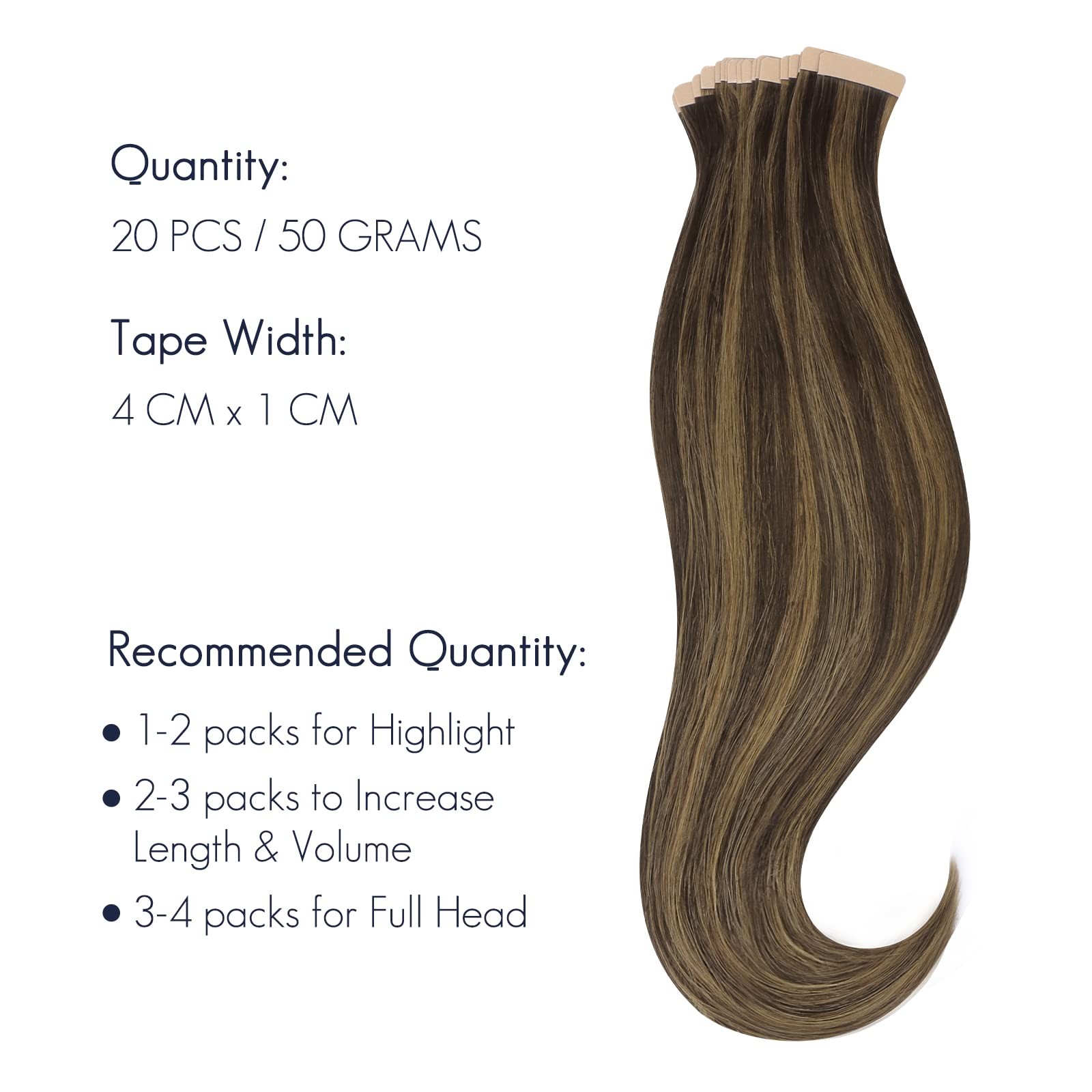 HOTBANANA Dark Brown Chestnut Tape-in Hair Extensions 20 20pcs 50g Remy