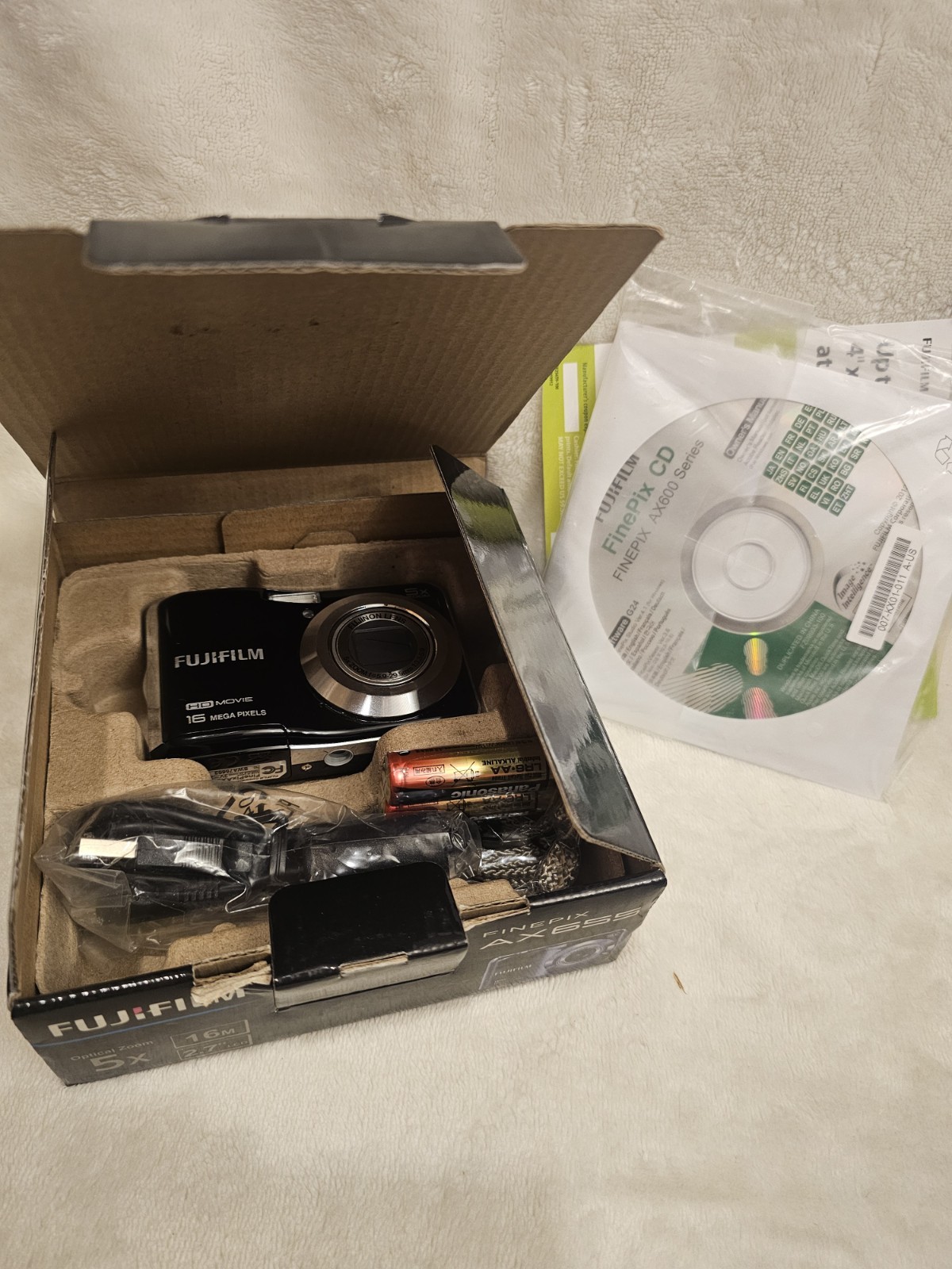 Fujifilm FinePix AX655 Digital Camera 16MP 5X Zoom HD Movie Compact Black Extras