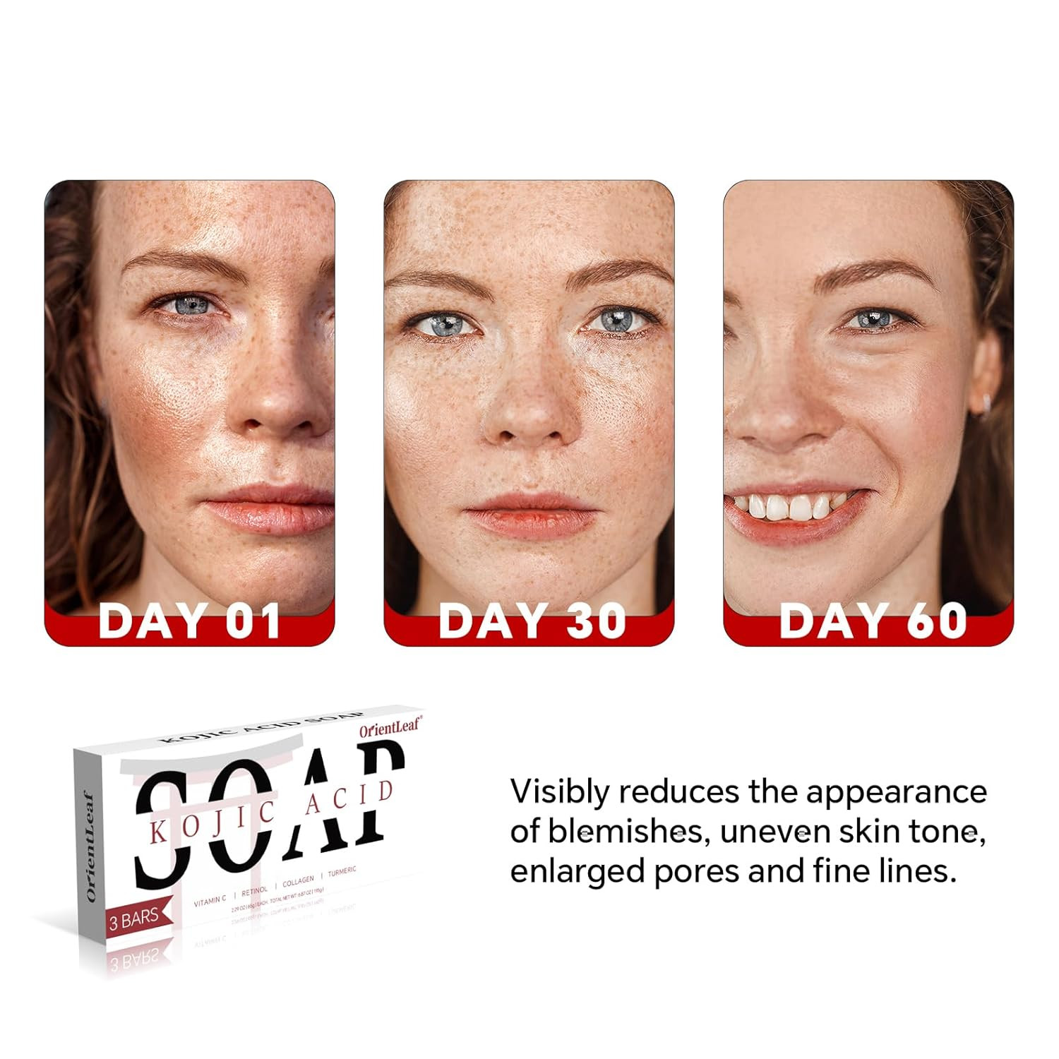 3PC Kojic Acid Soap Dark Spot Whitening Turmeric Skin Bleaching Lightening