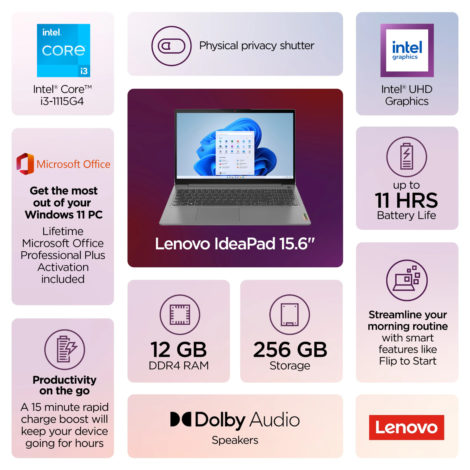 Lenovo IdeaPad 15.6 Touch Laptop Intel i3, 12GB RAM 256GB SSD Lifetime Office