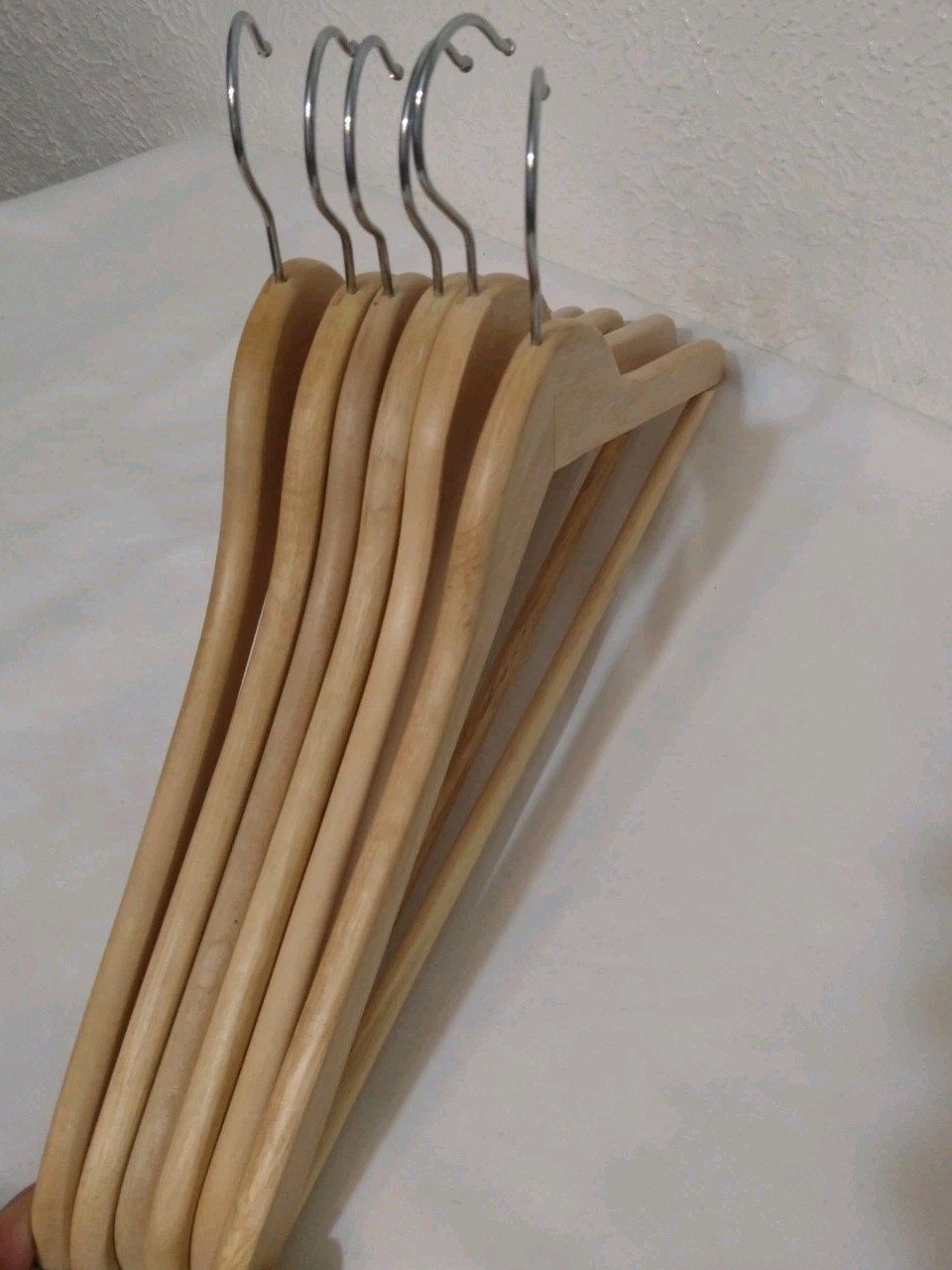 как выглядит 6 VTG Wooden Suit Hangers Clothes Coats Jackets Dress Pants Shirts Wood Vintage фото